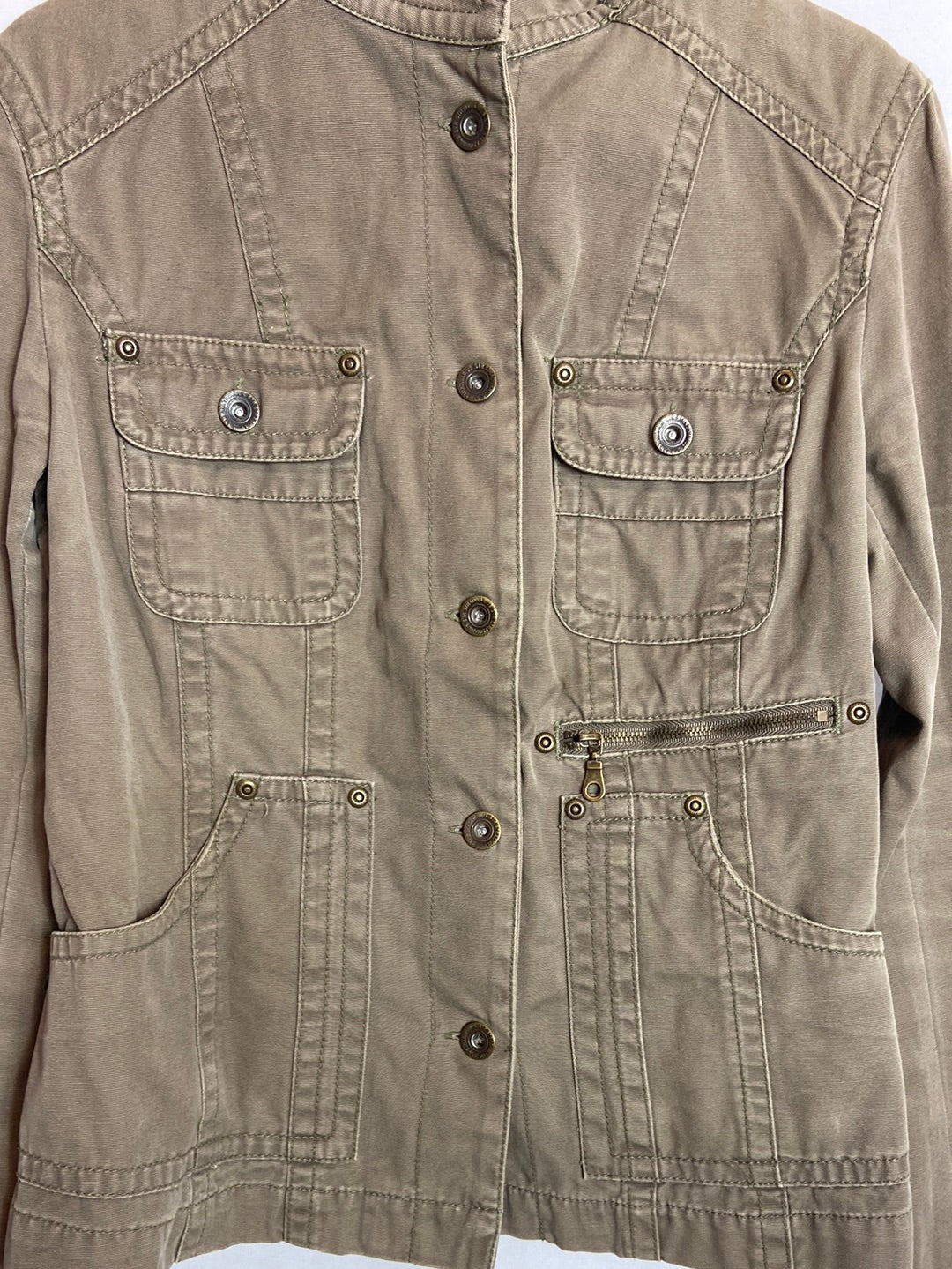 Cazadora verde detalles de bolsillos.