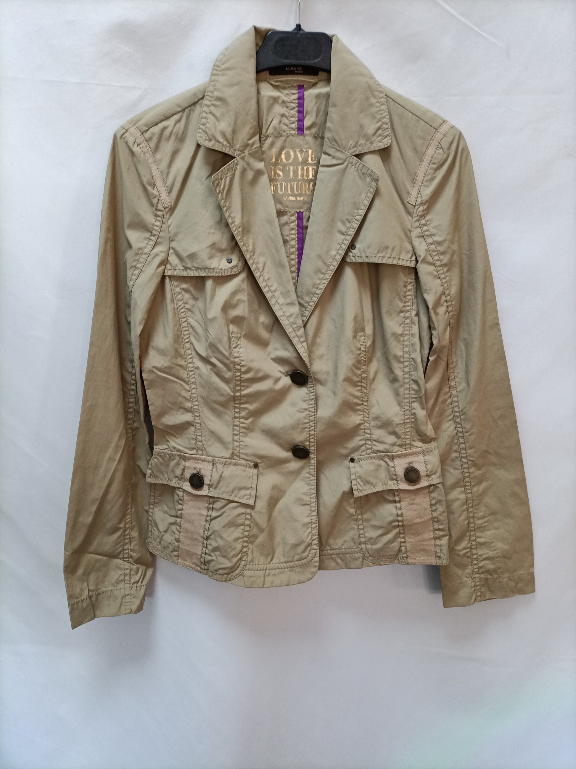 Blazer beige entallada de tejido tipo parka. Abotonado y no elástico. De sisa a sisa 44 cm largo 64 cm