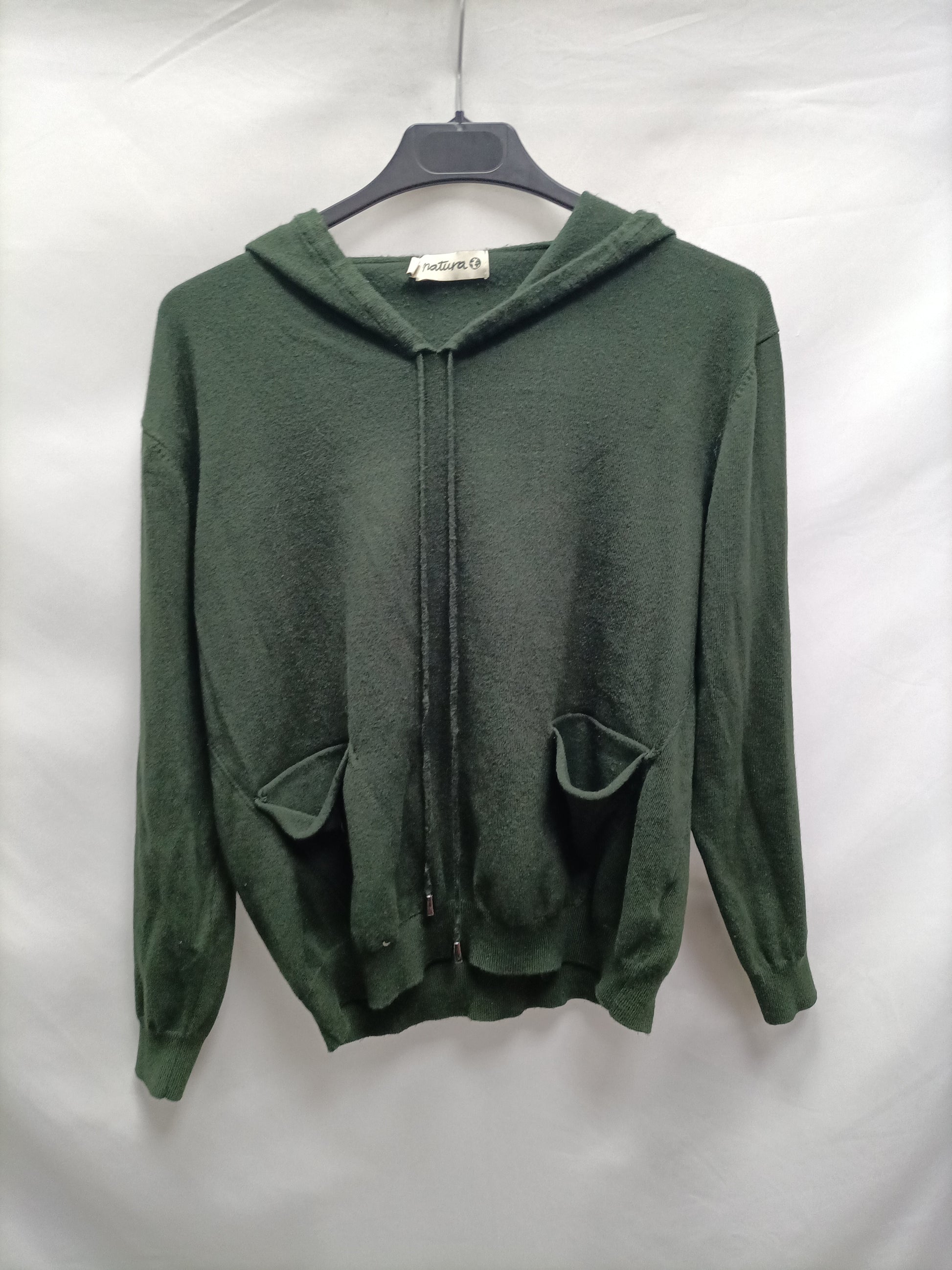 Jersey Finito verde botella con capucha. largo 56 cm.