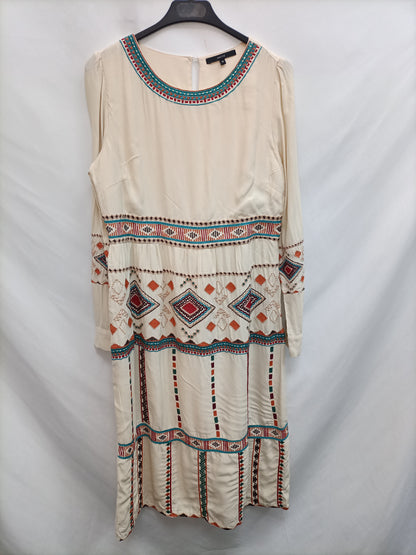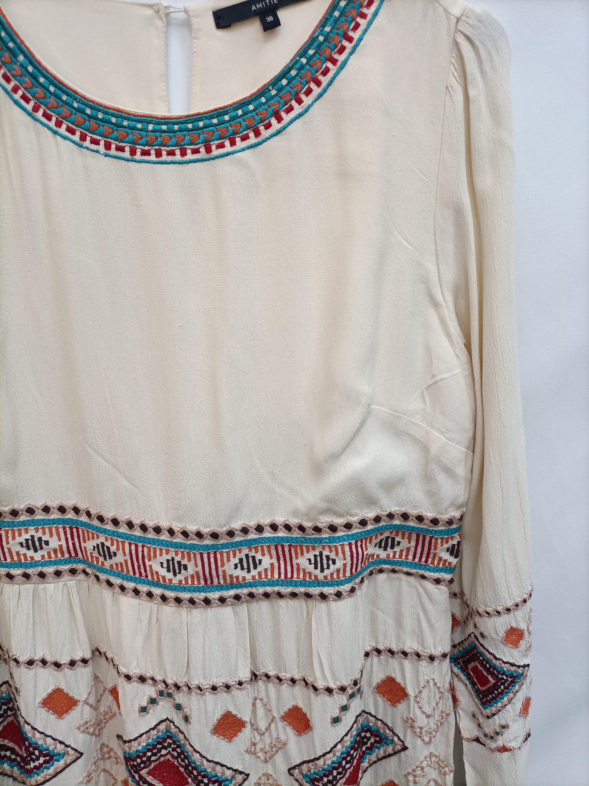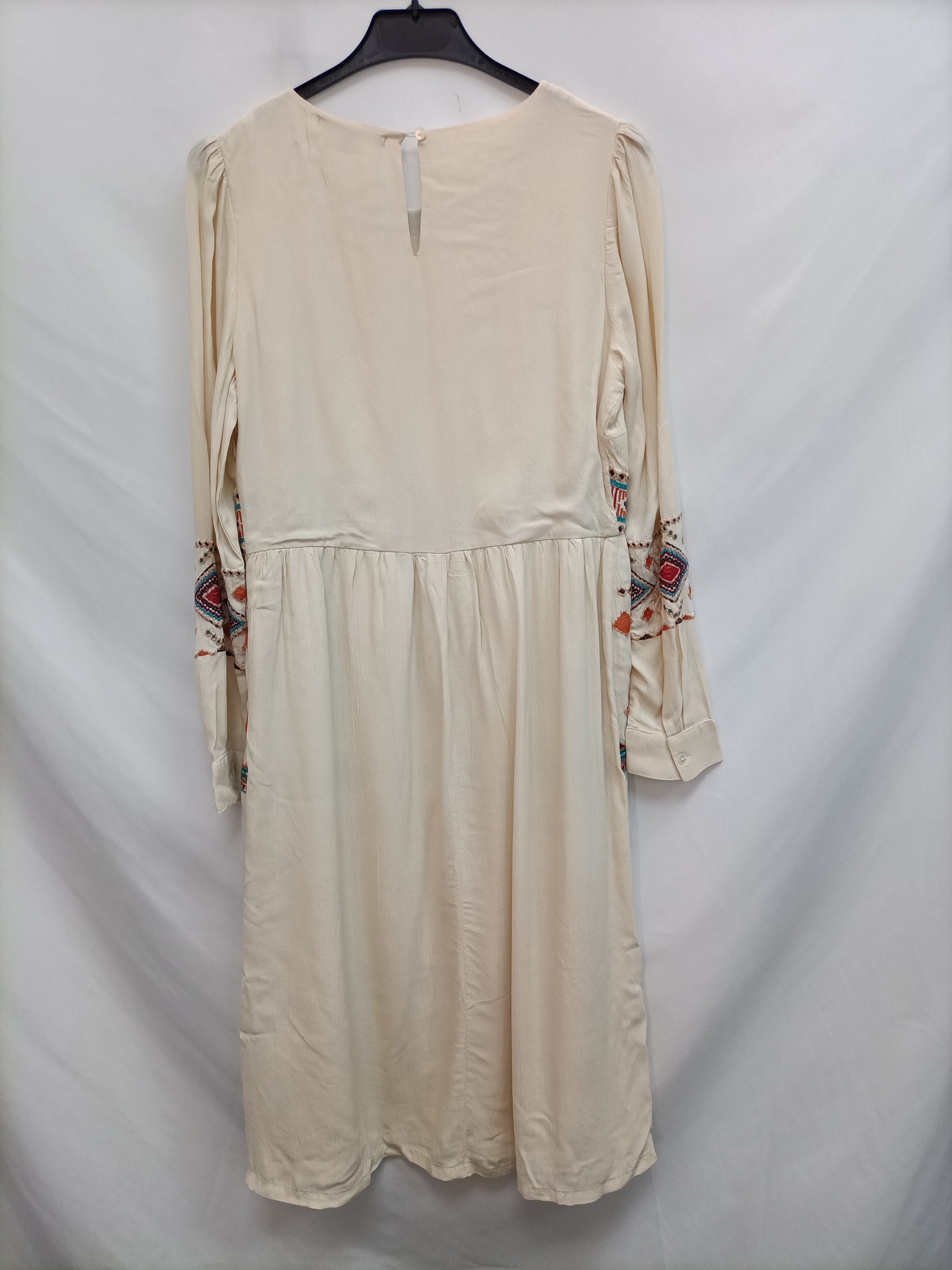 Vestido mido beige con detalles bordados. De sisa sisa 43 cm Largo 101 cm