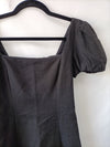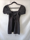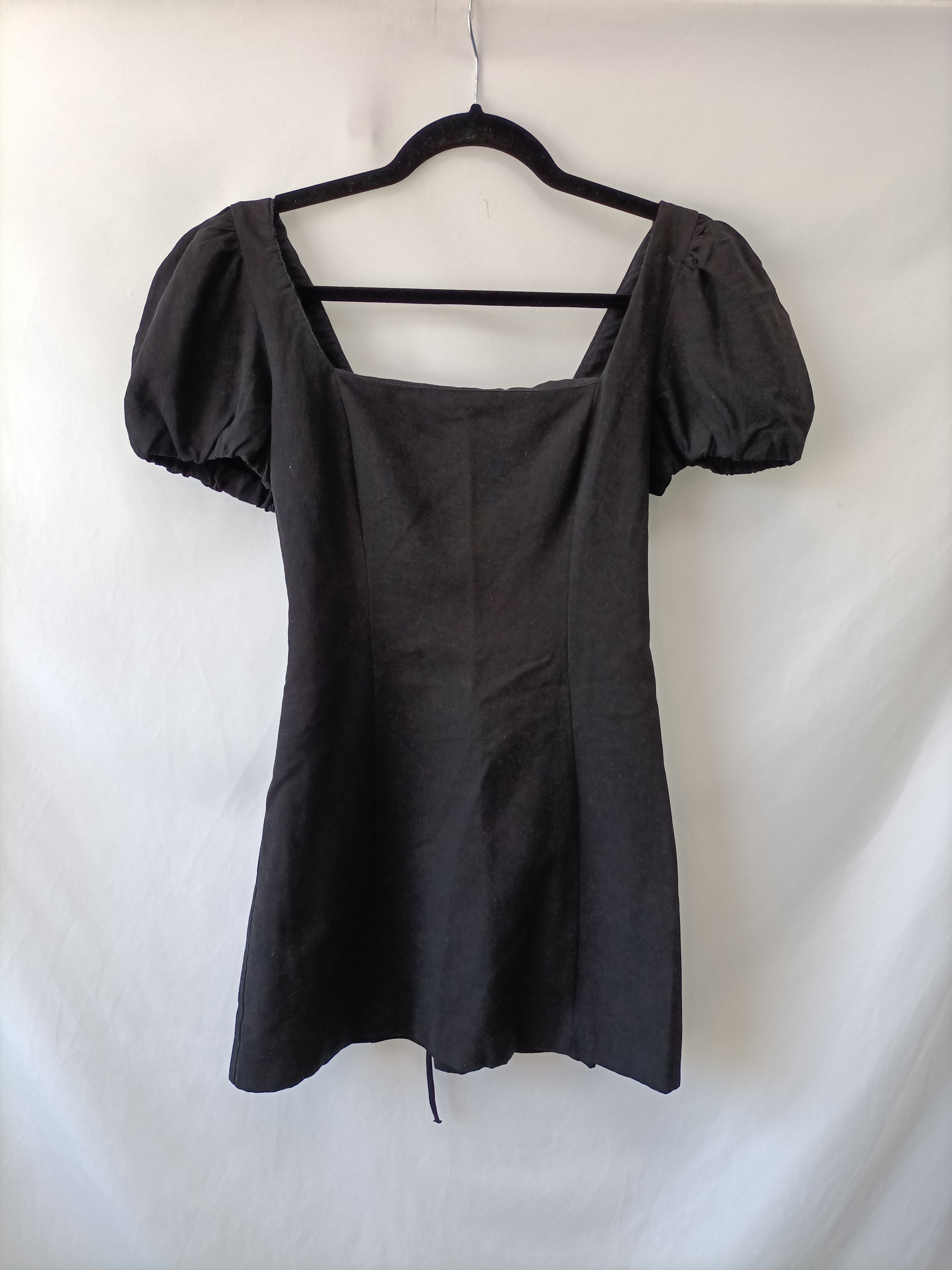 Vestido corto negras ajustado con las mangas Abullonadas y espalda abierta con cuerda. No elástico. De sisa a sisa 37 cm Largo 76 cm