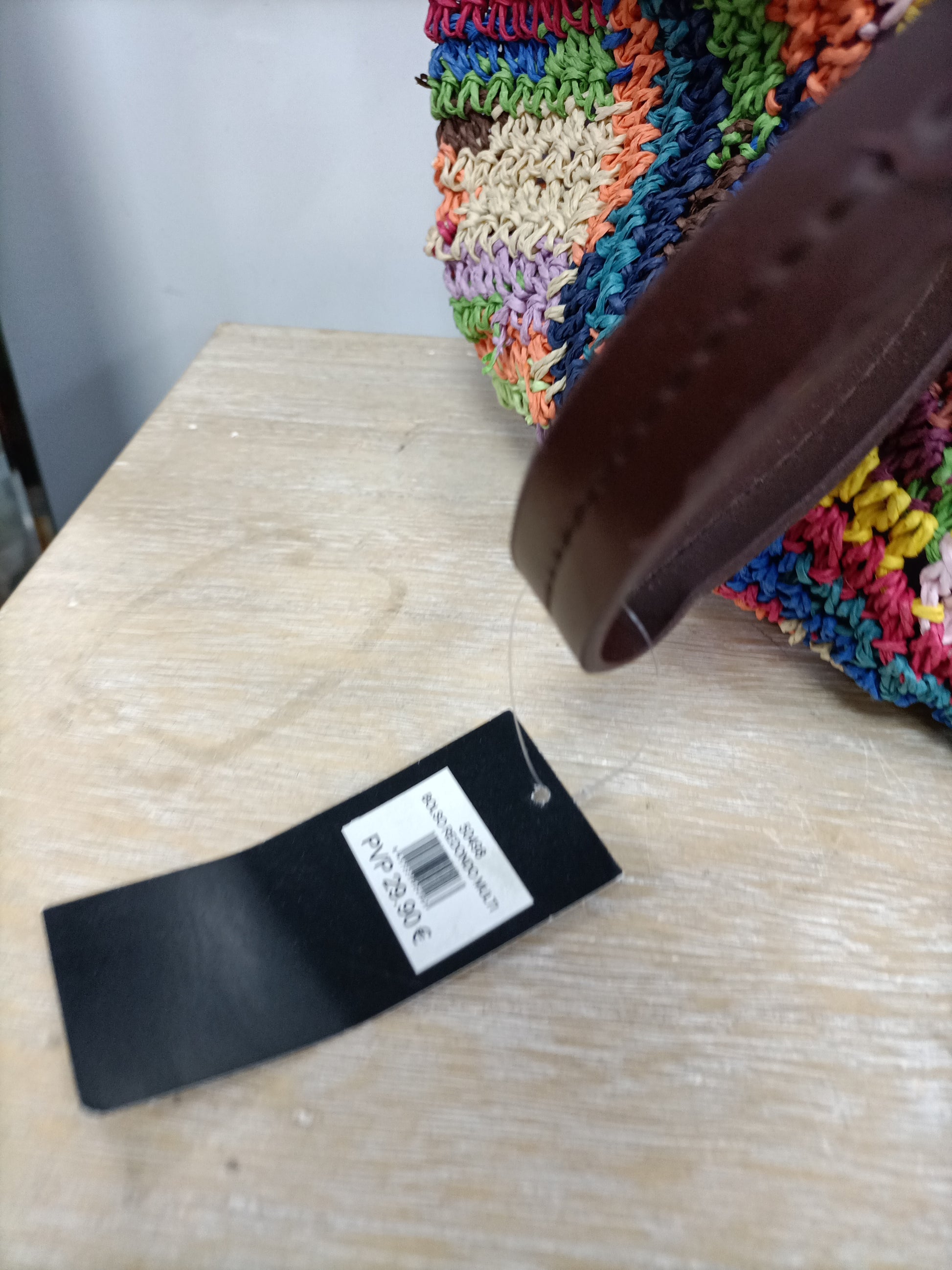 NUEVO CON ETIQUETA. Bolso de rafia de colores con asa en polipiel
