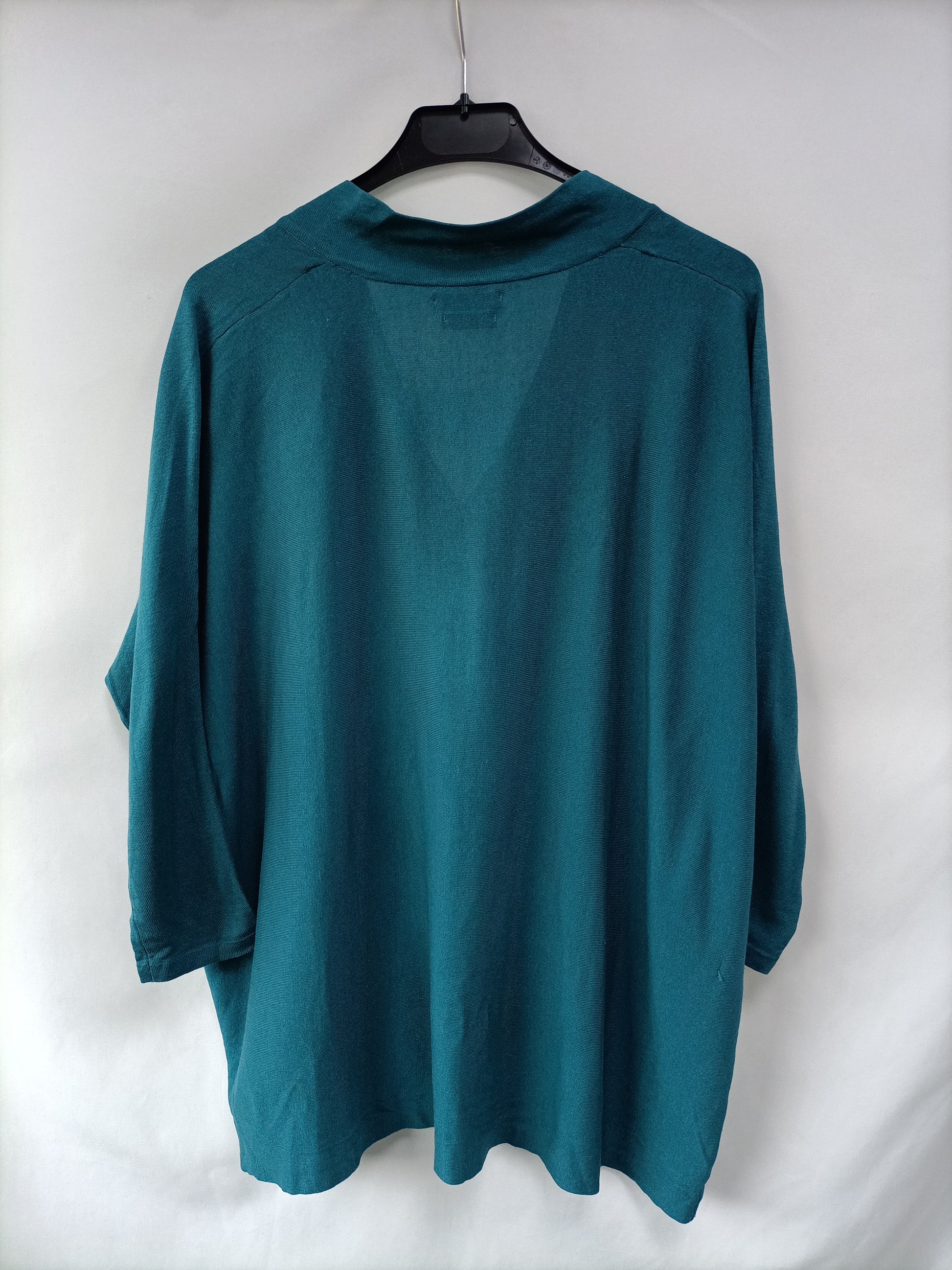 Jersey azul verdoso de seda Fluido y elastico. Mangas 3/4. Largo 68 cm