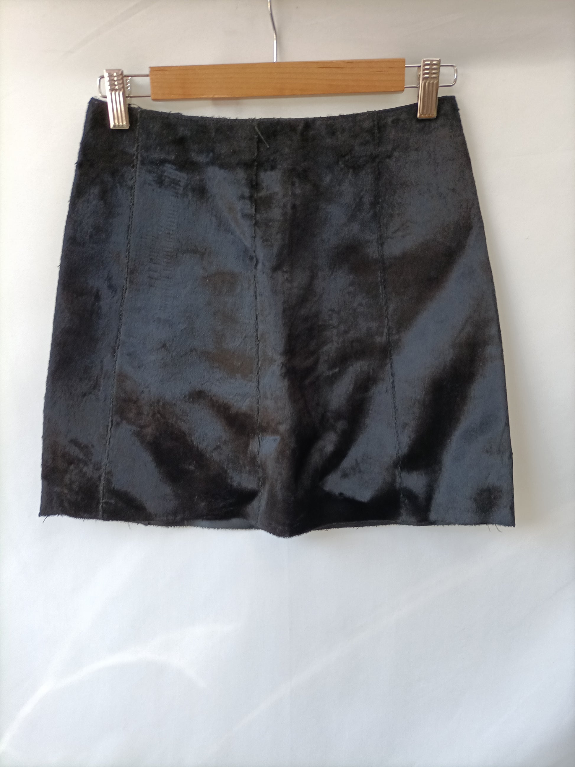 Falda corta de piel con exterior de pelito. No elástico. Cintura 35 cm Largo 42 cm