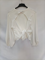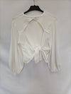 Tops beige con lazada en la espalda abertura.Doble textura. elastico. largo 42 cm