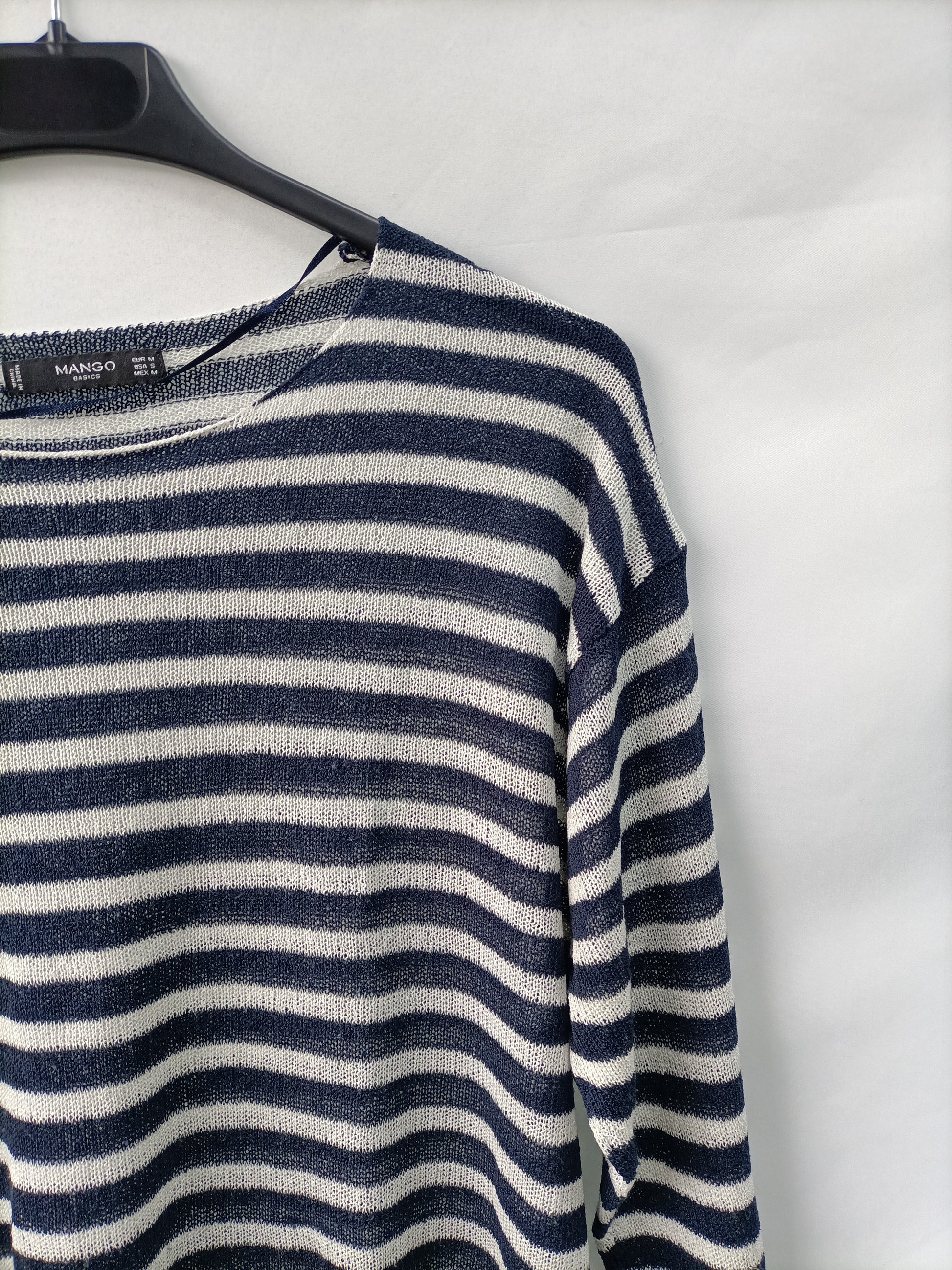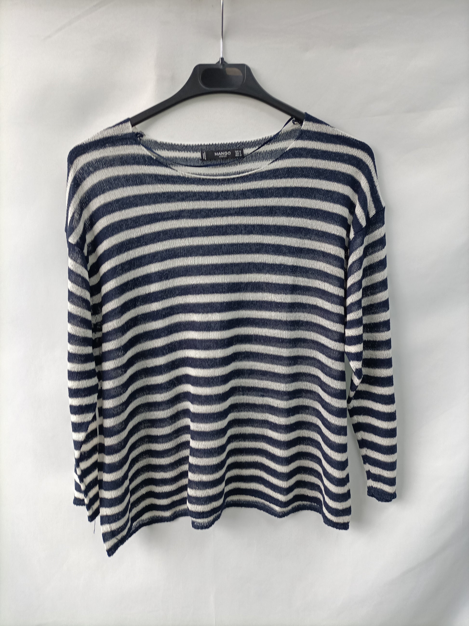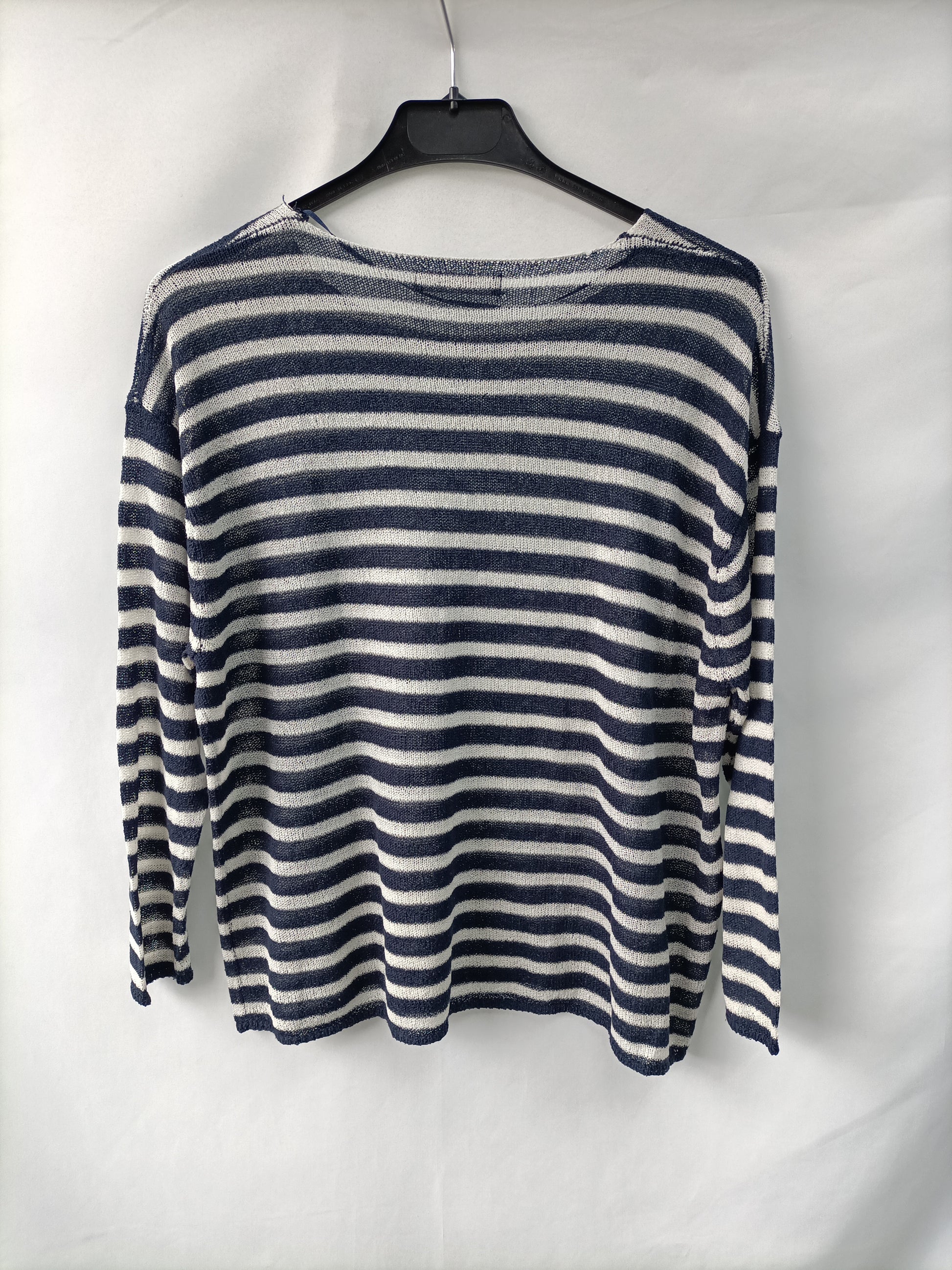 Jersey finito y fluido de rayas azul y blanco. Elastico. largo 54 cm