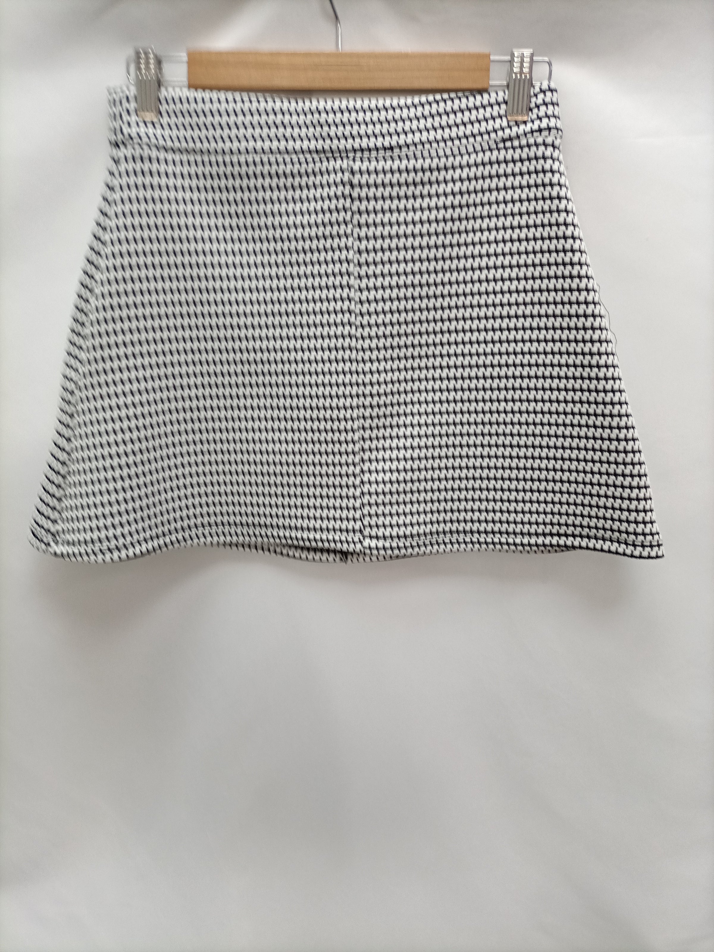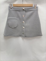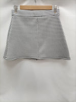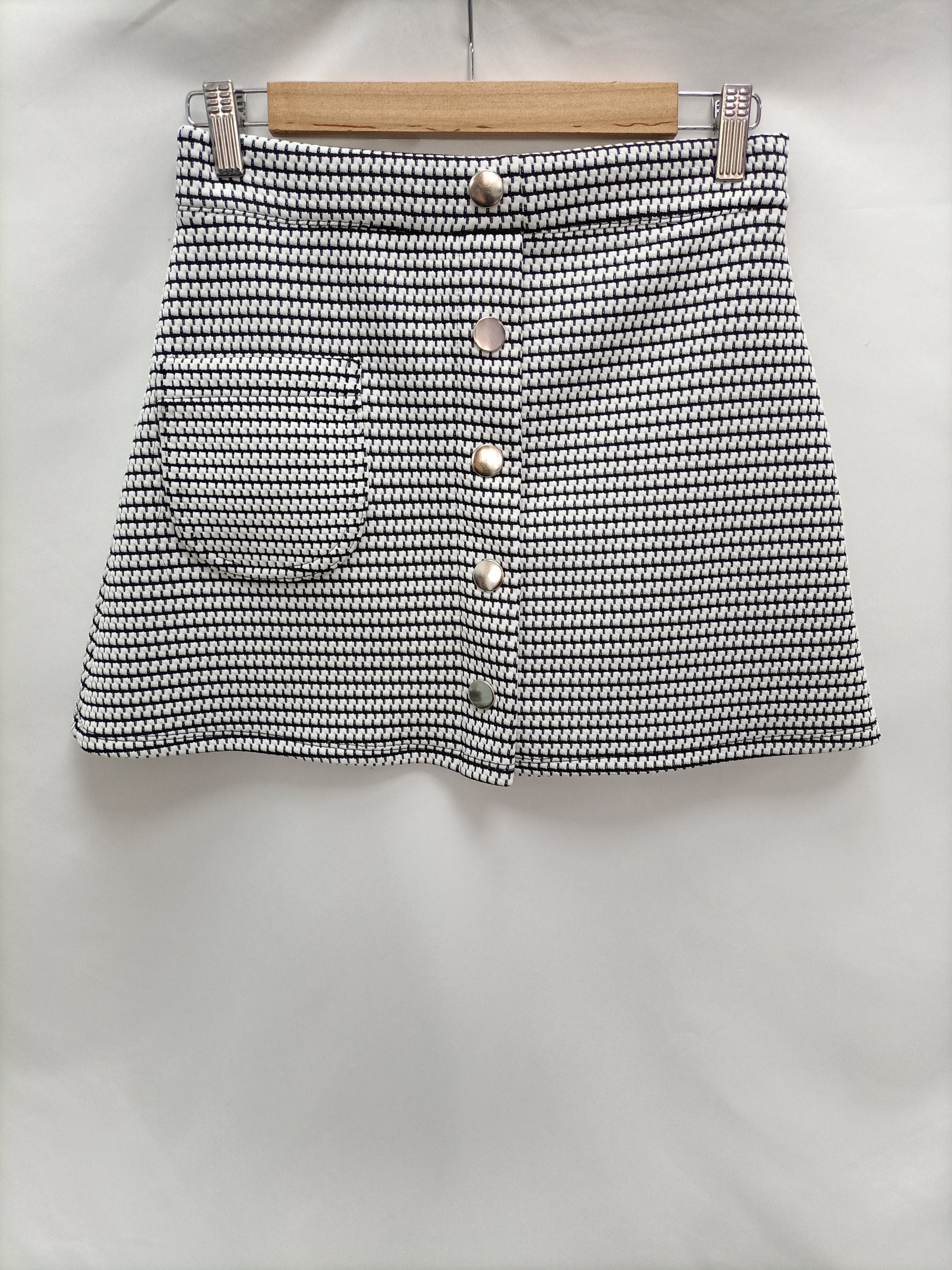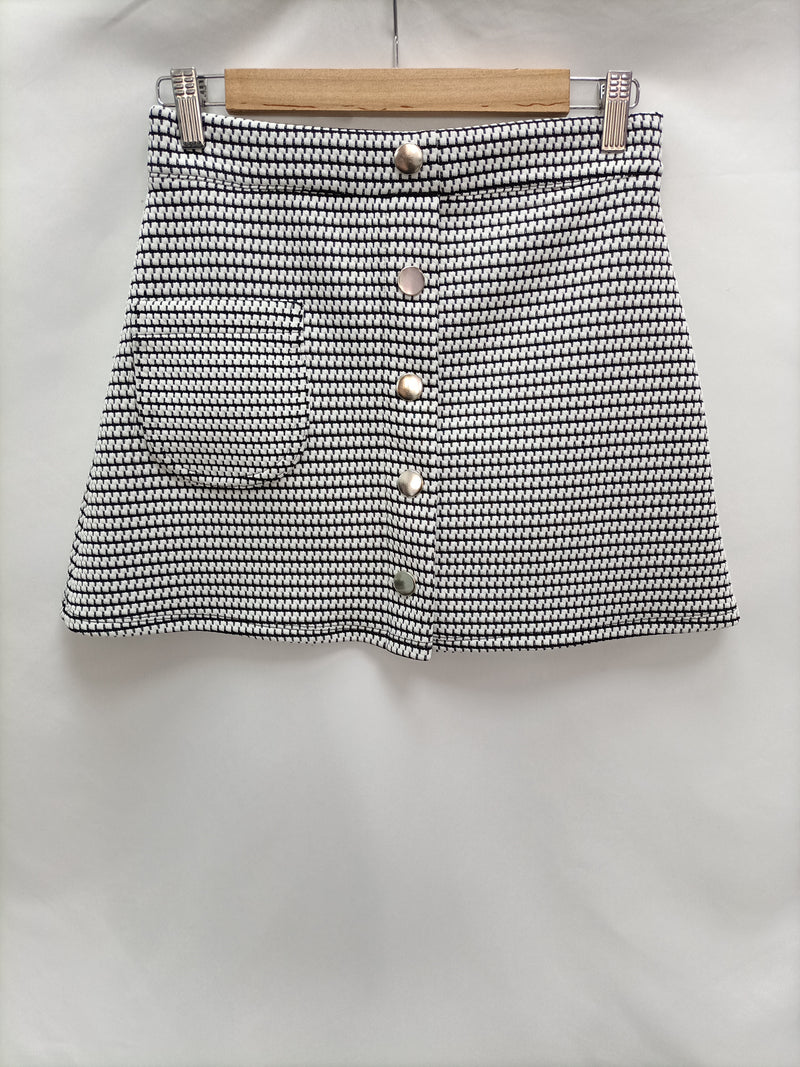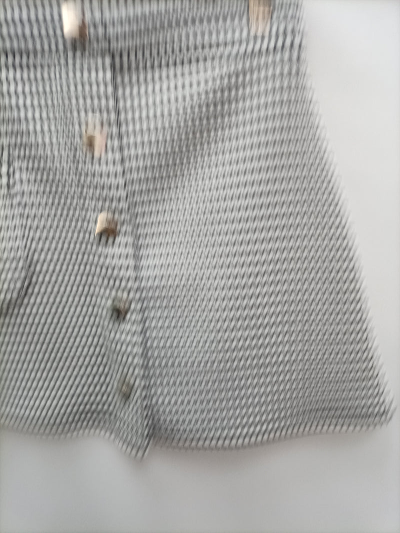 Falda con textura en cuadros. Botones y corte acampanado. elastica. Largo 38 cm