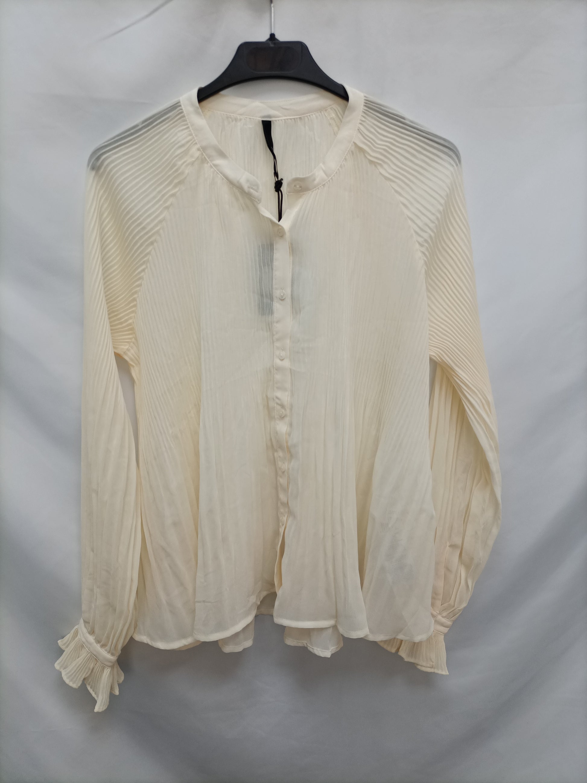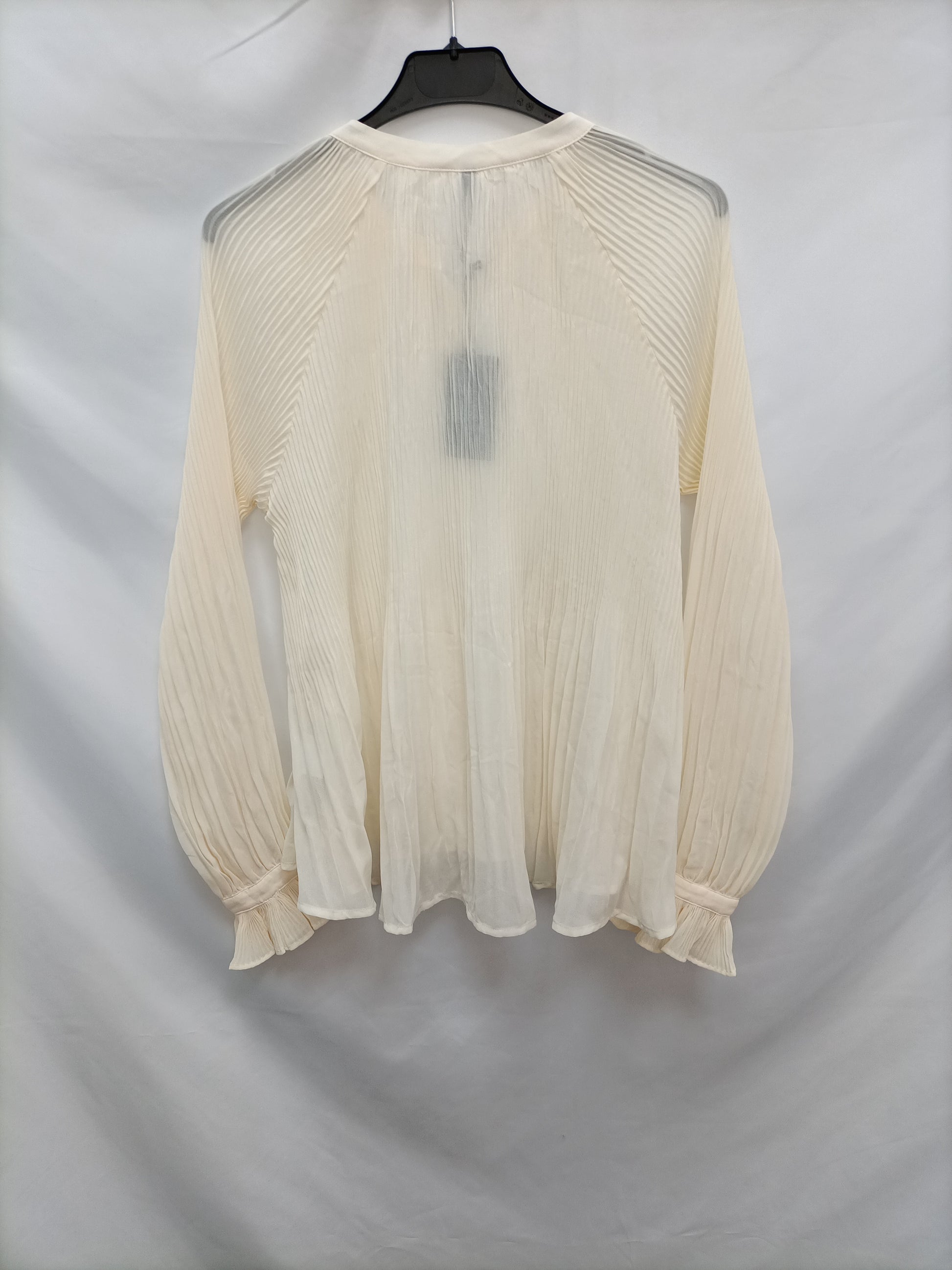 NUEVO CON ETIQUETA. blusa beige de tejido plisado. Semitransparente. Elastica. De sisa a sisa 53 Largo 64 cm