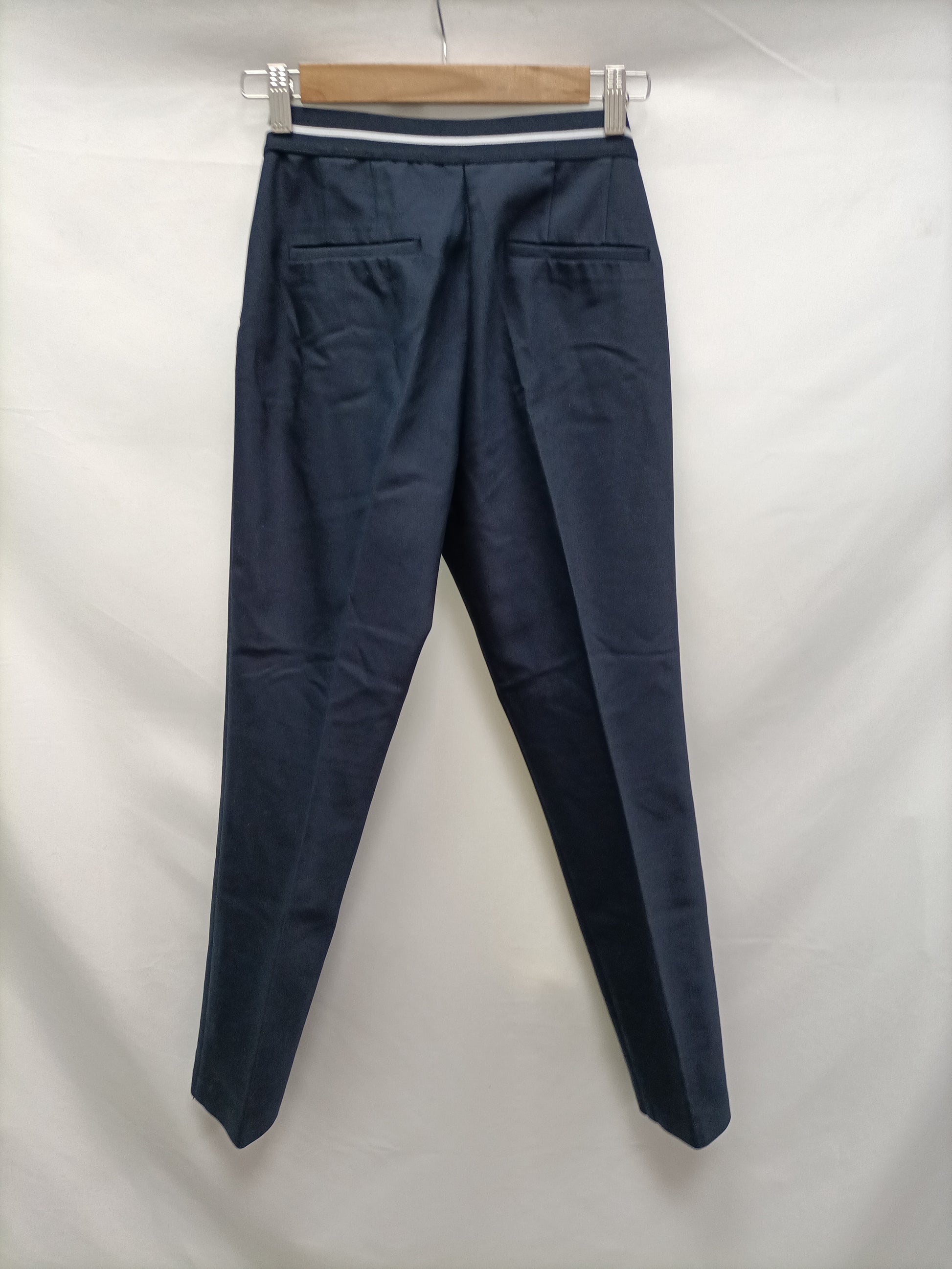 Pantalón azul marino estilo chino de vestir con detalle de goma en la espalda azul y blanca. Cintura 38 cm Largo 96 cm