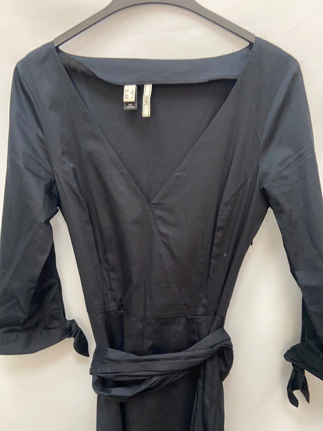 Vestido midi negro con la falda estilo plisada. Lazada en la cintura. No elastica. De sisa a sisa 43 cm largo 100 cm