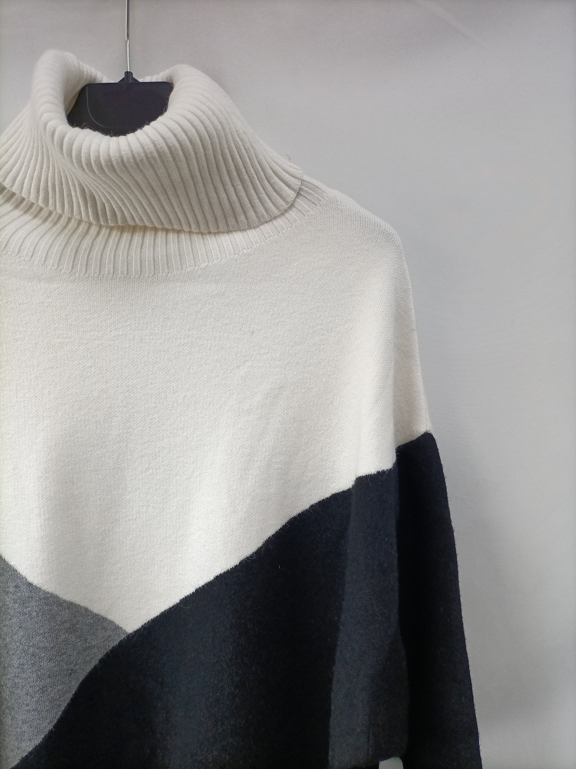 Jersey punto tricolor con el cuello alto. Largo 62 cm