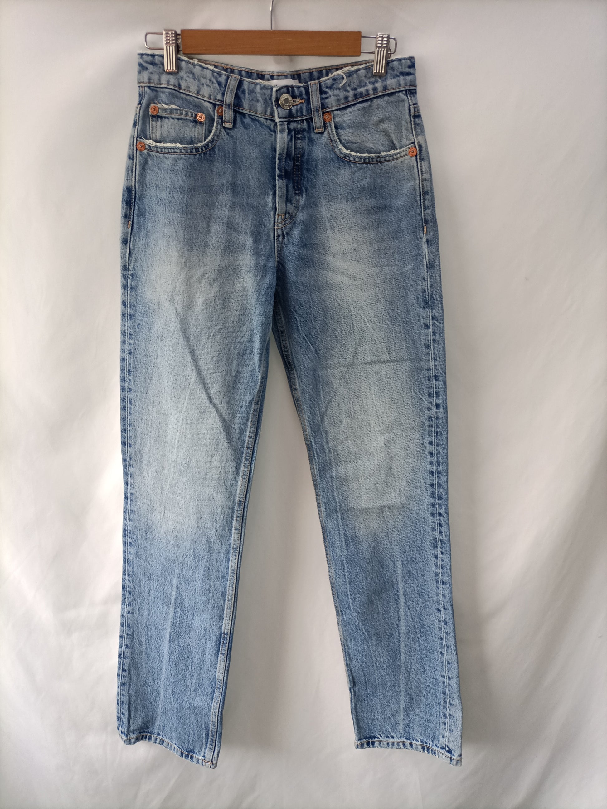 Pantalon denim recto clarito. Cintura 36 cm largo 107 cm
