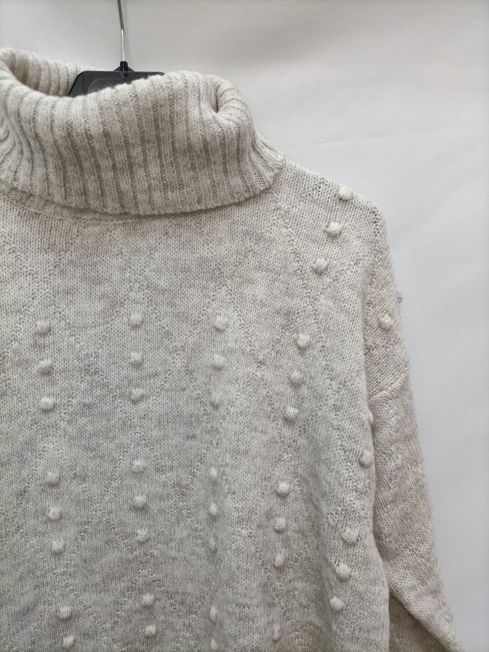 jersey de cuello alto Jaspeado gris y beige. largo 92 cm