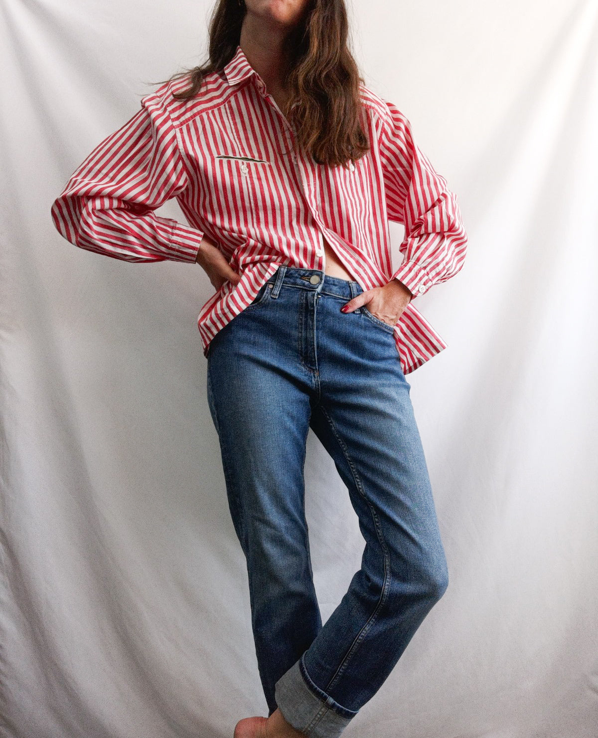 camisa de cuadros de rayas blanco y rojos. de sisa a sisa 52 cm Largo 65 cm