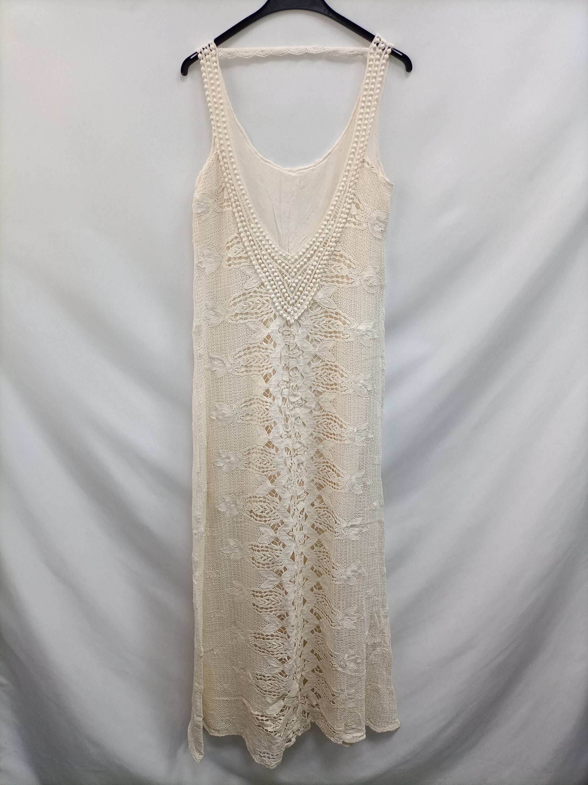 Vestido largo de encaje Beige. Elastico. Largo 139 cm