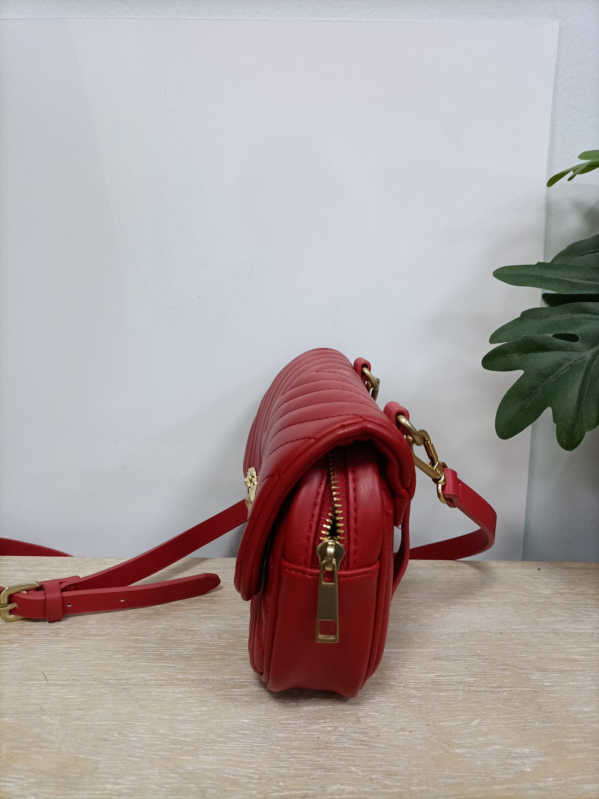 Bolso rojo efecto piel con detalle de cierre dorado. Se puede convertir en riñonera