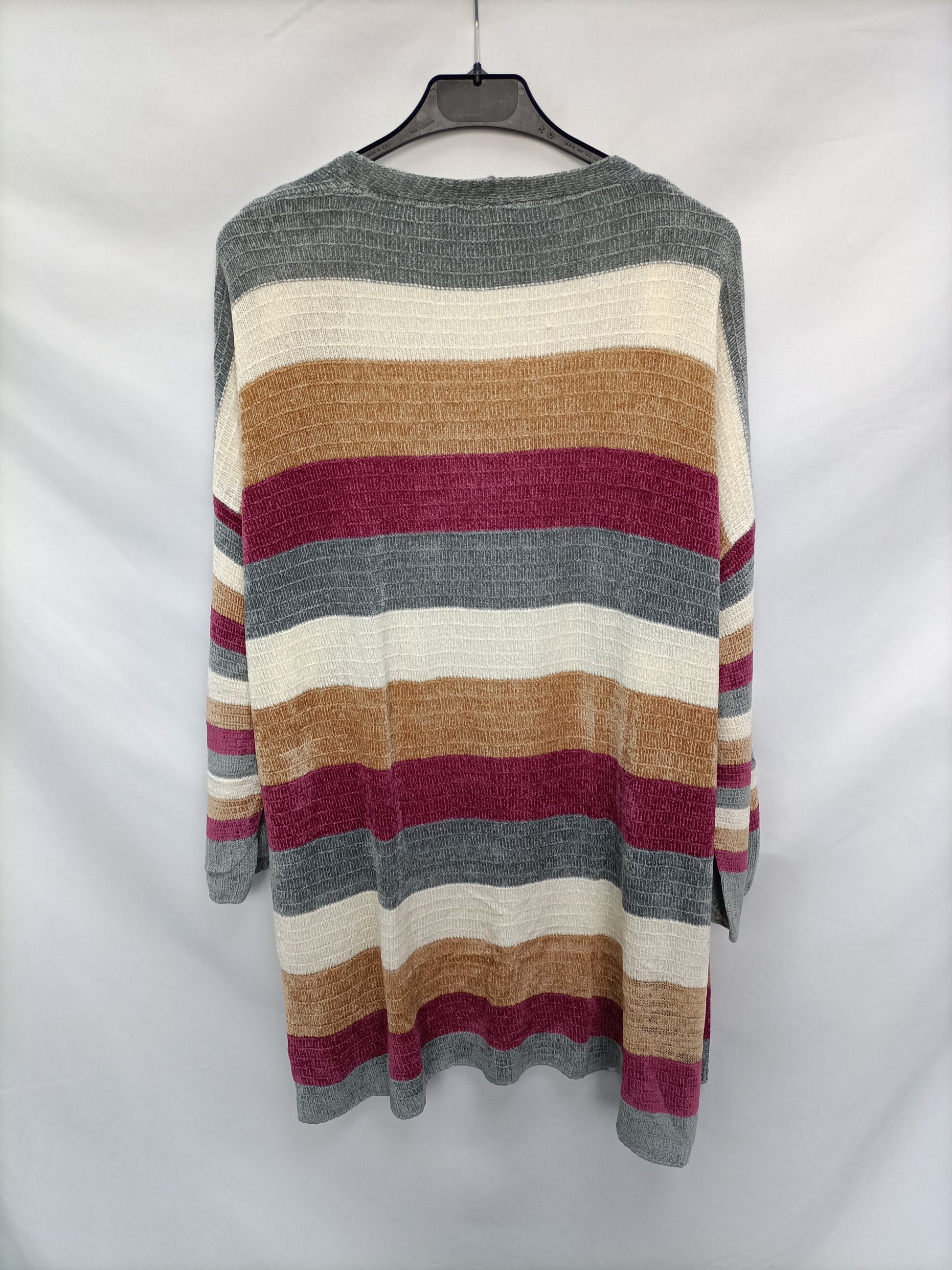 Cárdigan de rayas de tejido suave aterciopelado. elástico y nose abrocha. Largo 78 cm