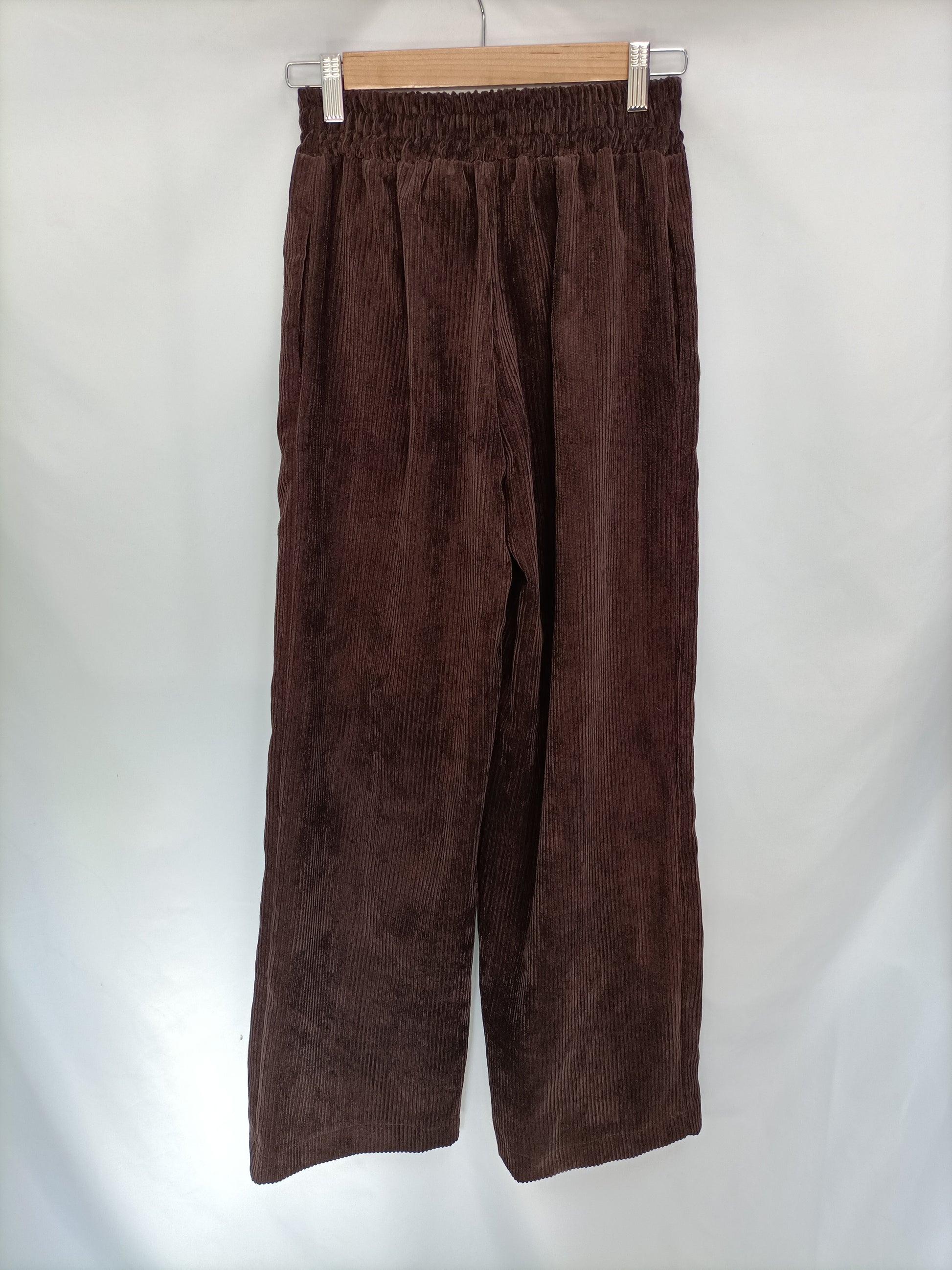 NUEVO CON ETIQUETA. Pantalón estilo Palazzo de pana marrón chocolate. Cintura elástica. Largo 107 cm. Total look