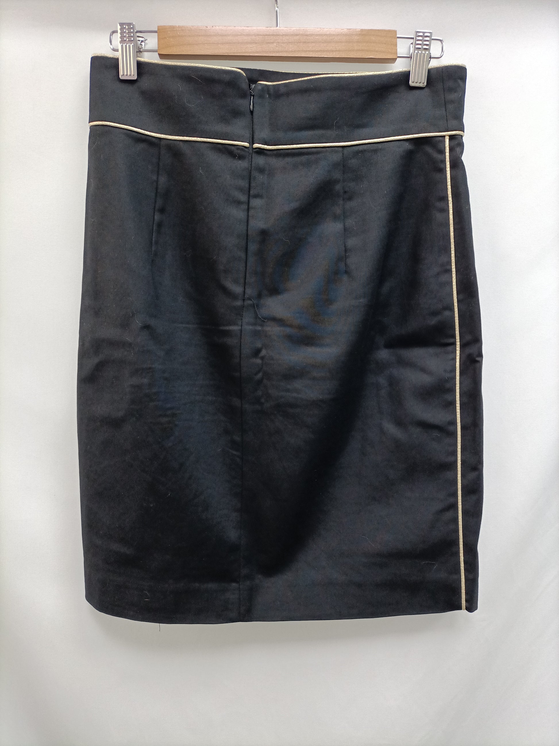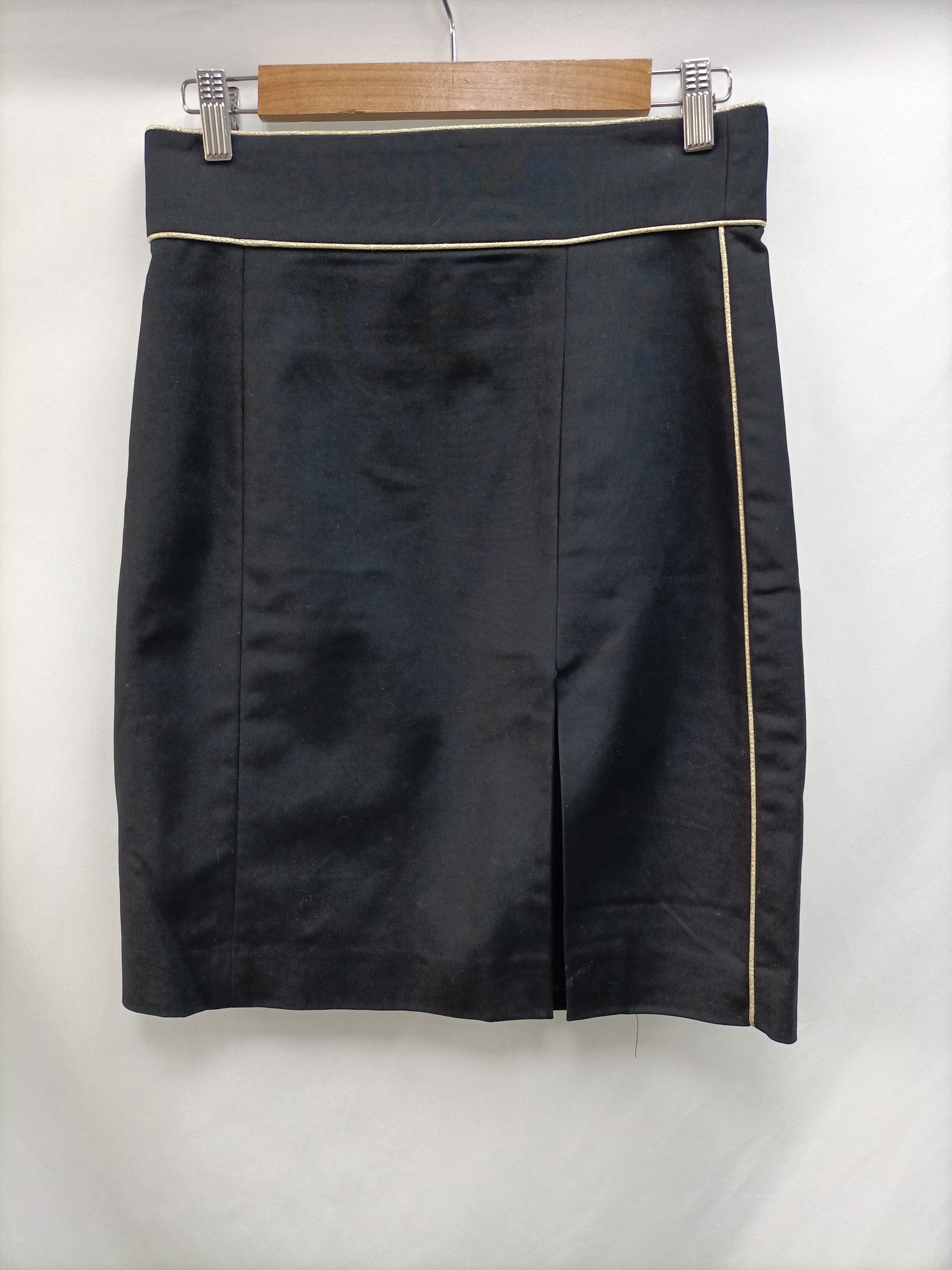 Falda negra largo por la rodilla no elástica detalle de línea dorada. Cintura 37 cm Largo 54 cm