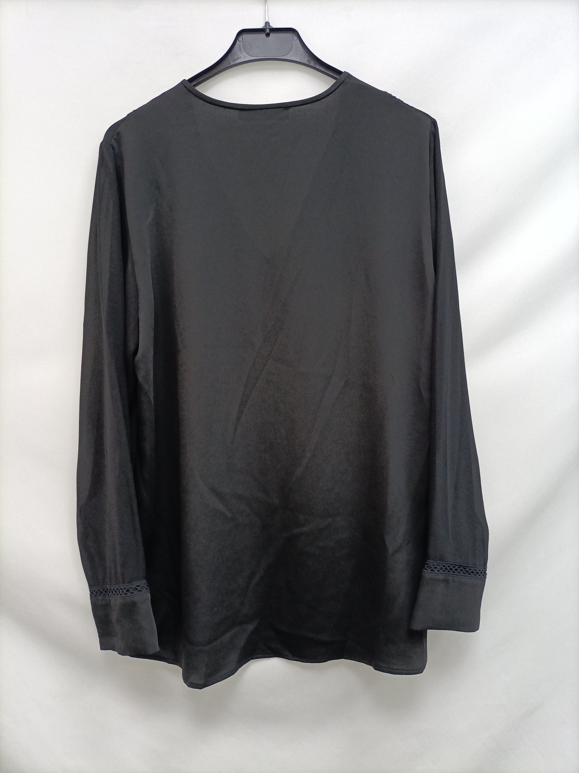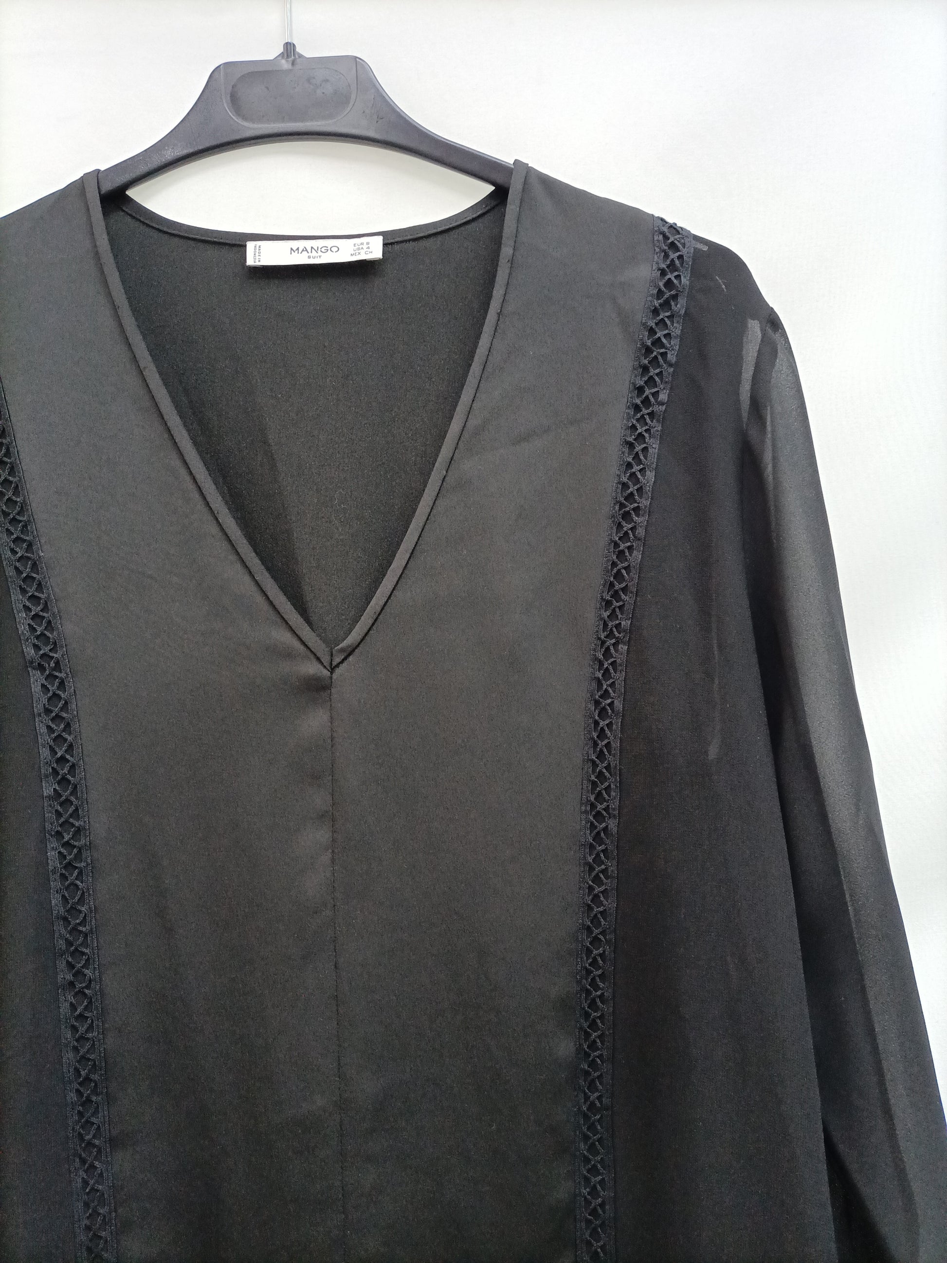 Blusa negra doble textura. mangas semitransparente. De sisa a sisa 48 cm largo 69 cm.