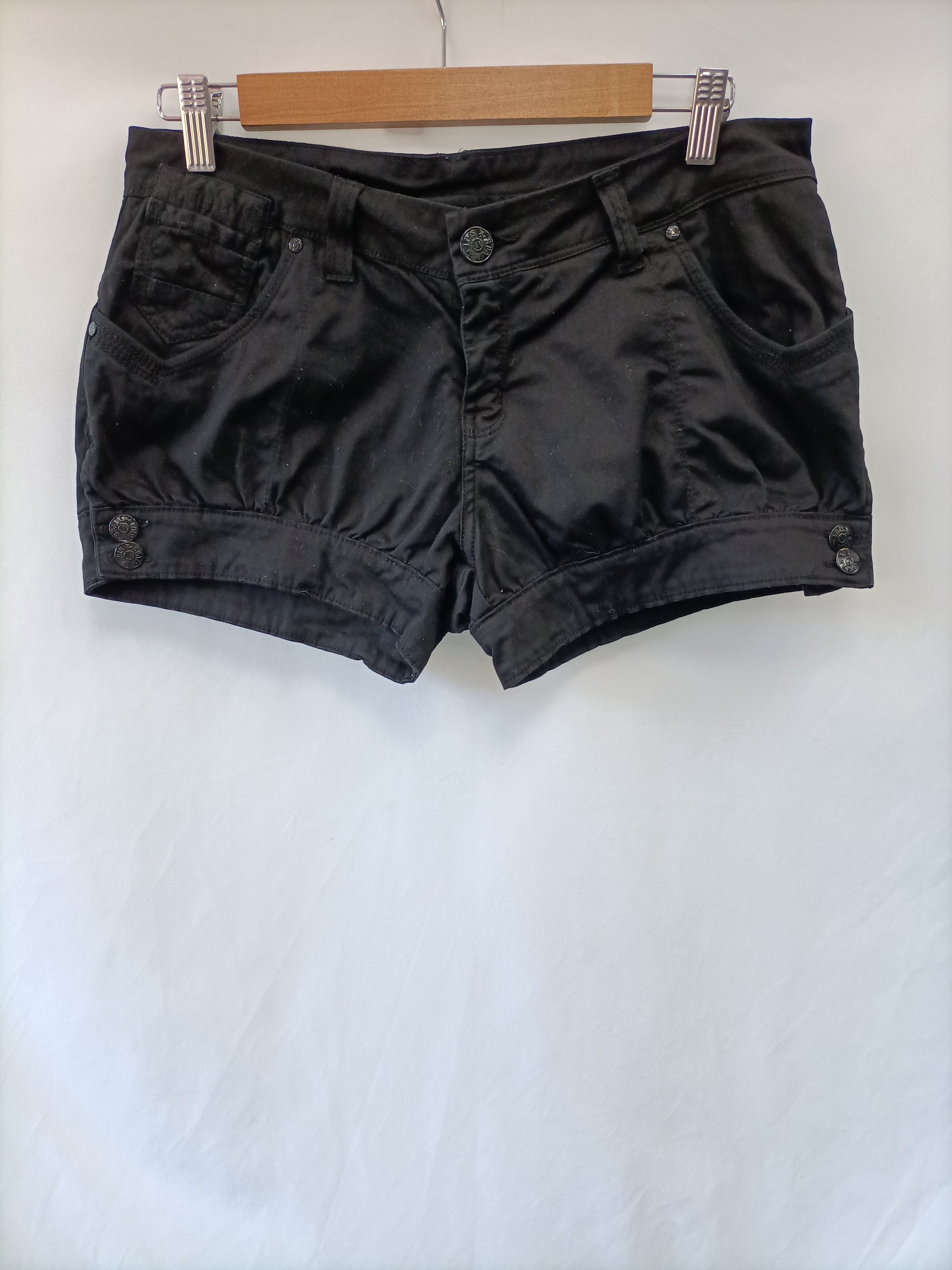 Shorts negro estilo bombacho con botones en la pierna. No elástico. Cintura 41 cm largo 25 cm