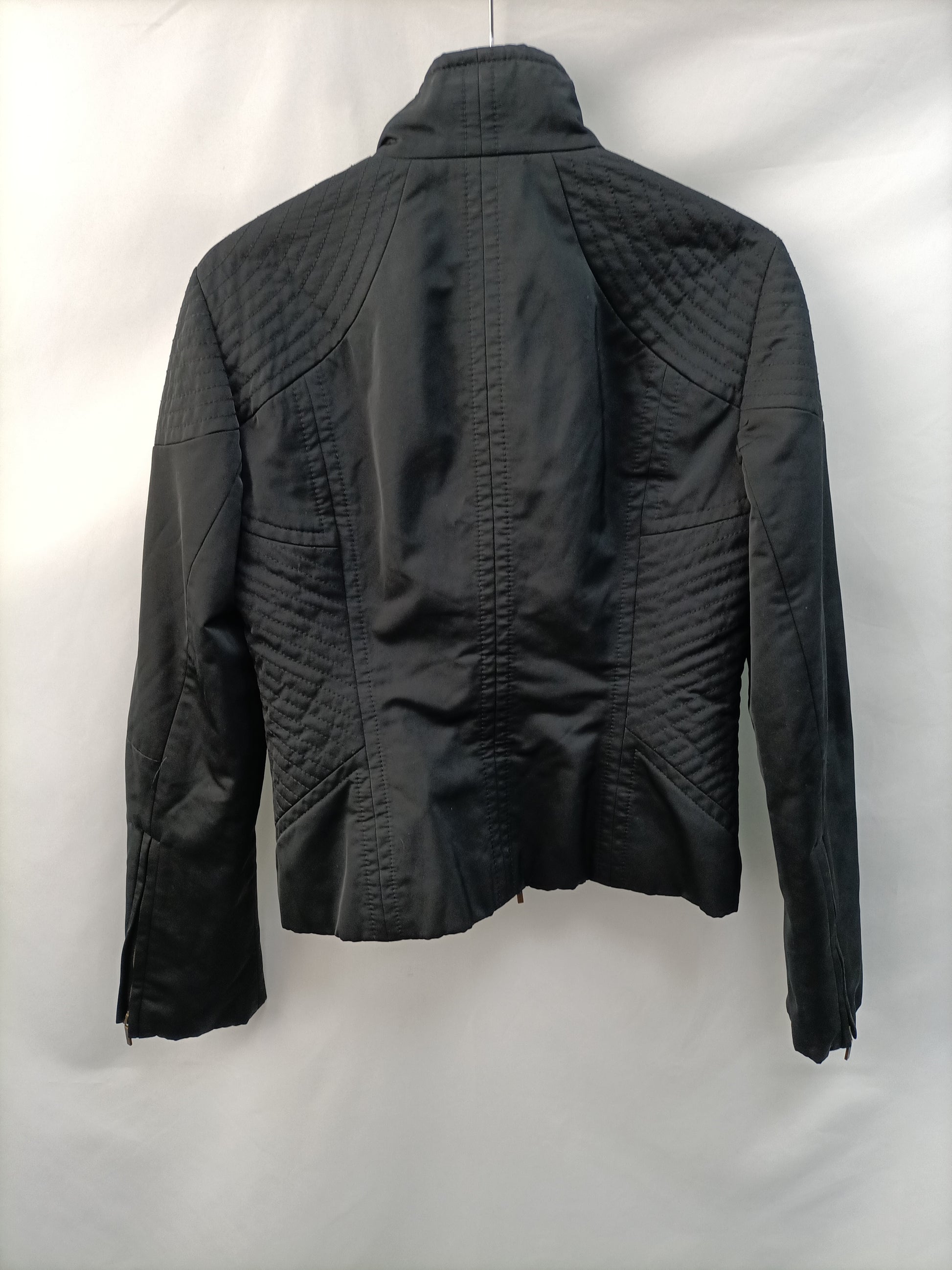 Cazadora negra efecto impermeable entallada. No elástico. De sisa a sisa 46 cm Largo 60 cm