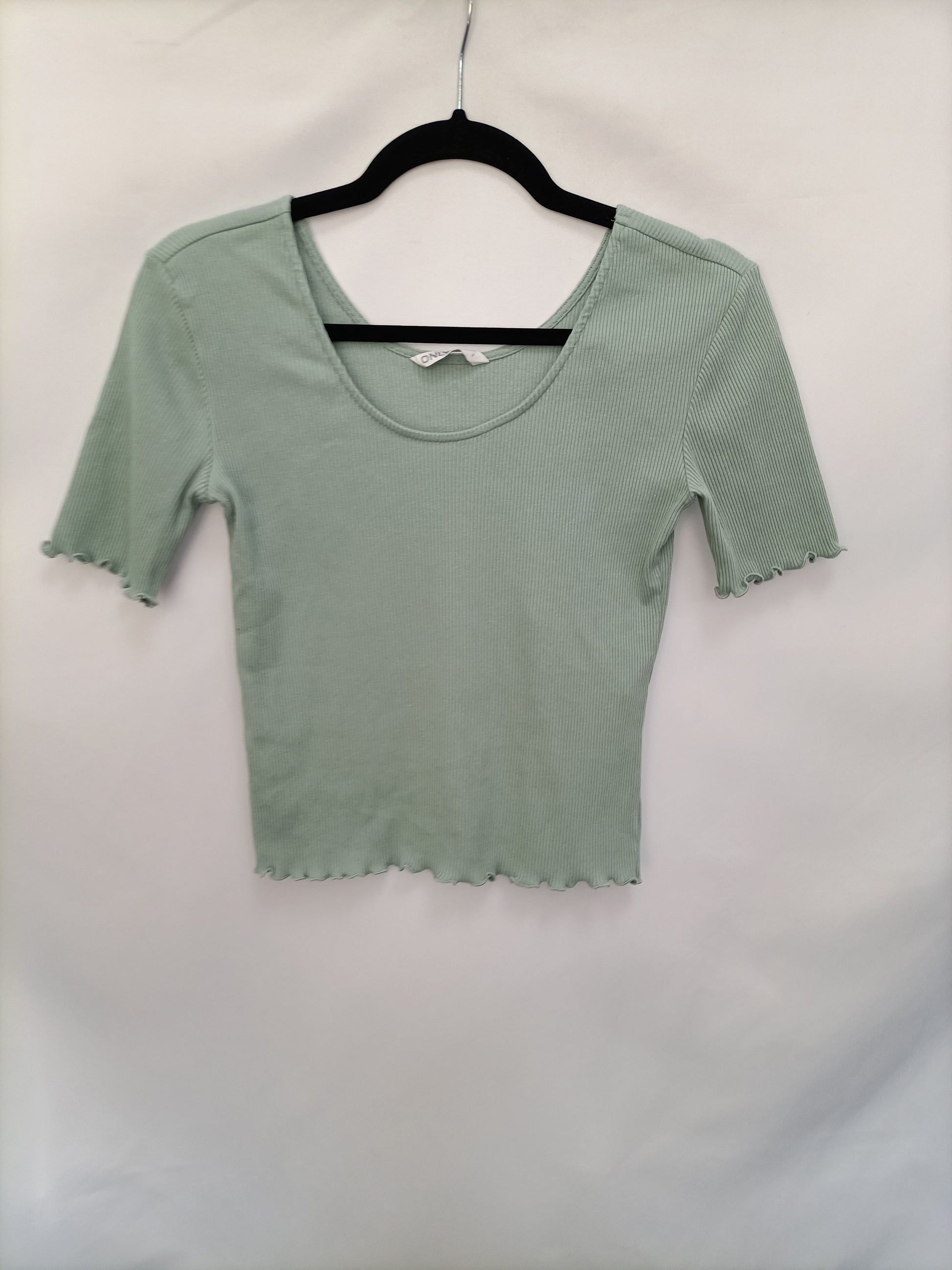 Top verde cortito de canalé. Elastico. largo 49 cm