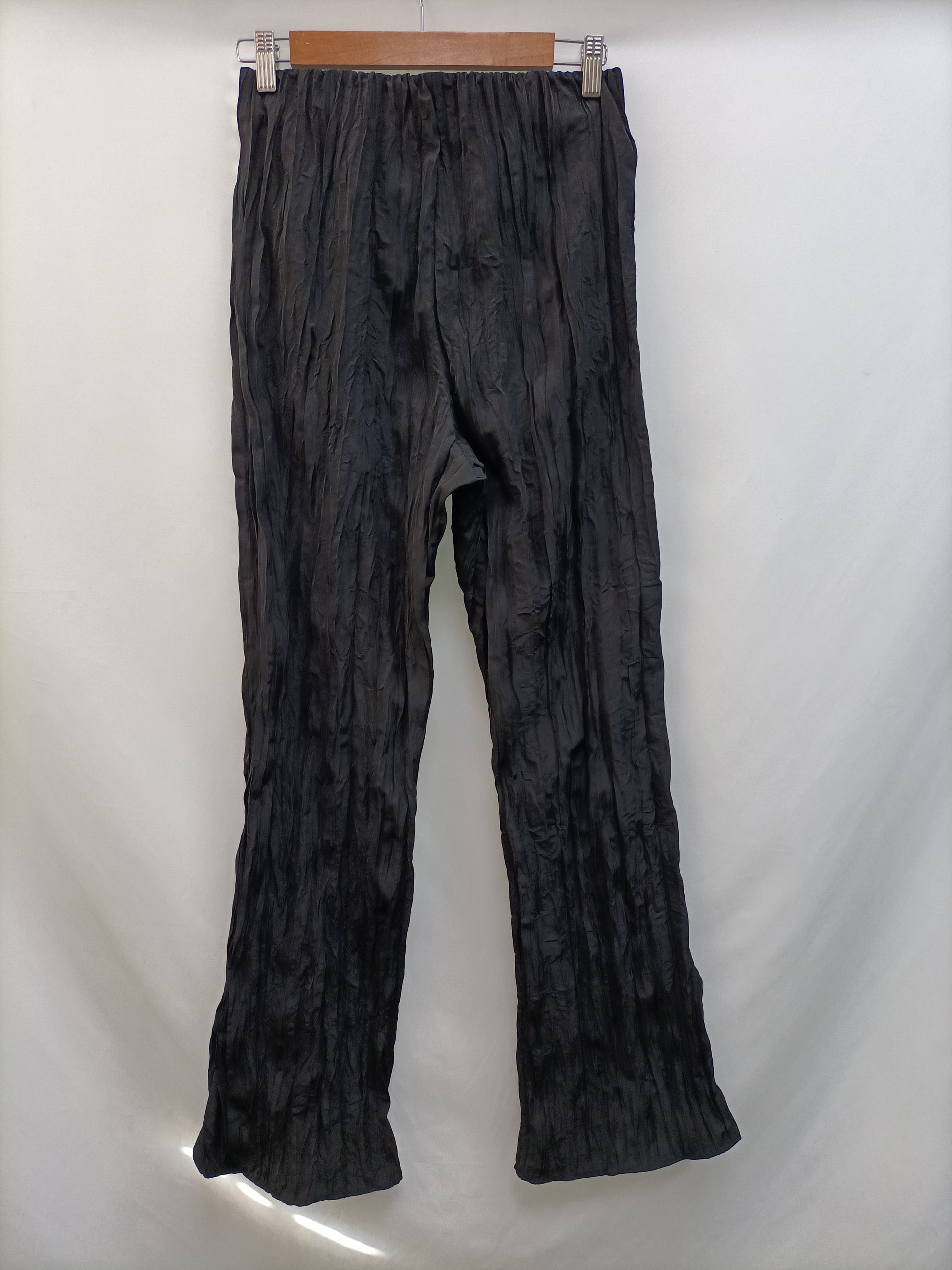 Pantalón negro plisado. Semielastico. Total look con blusa. Cintura elástica Largo 106 cm