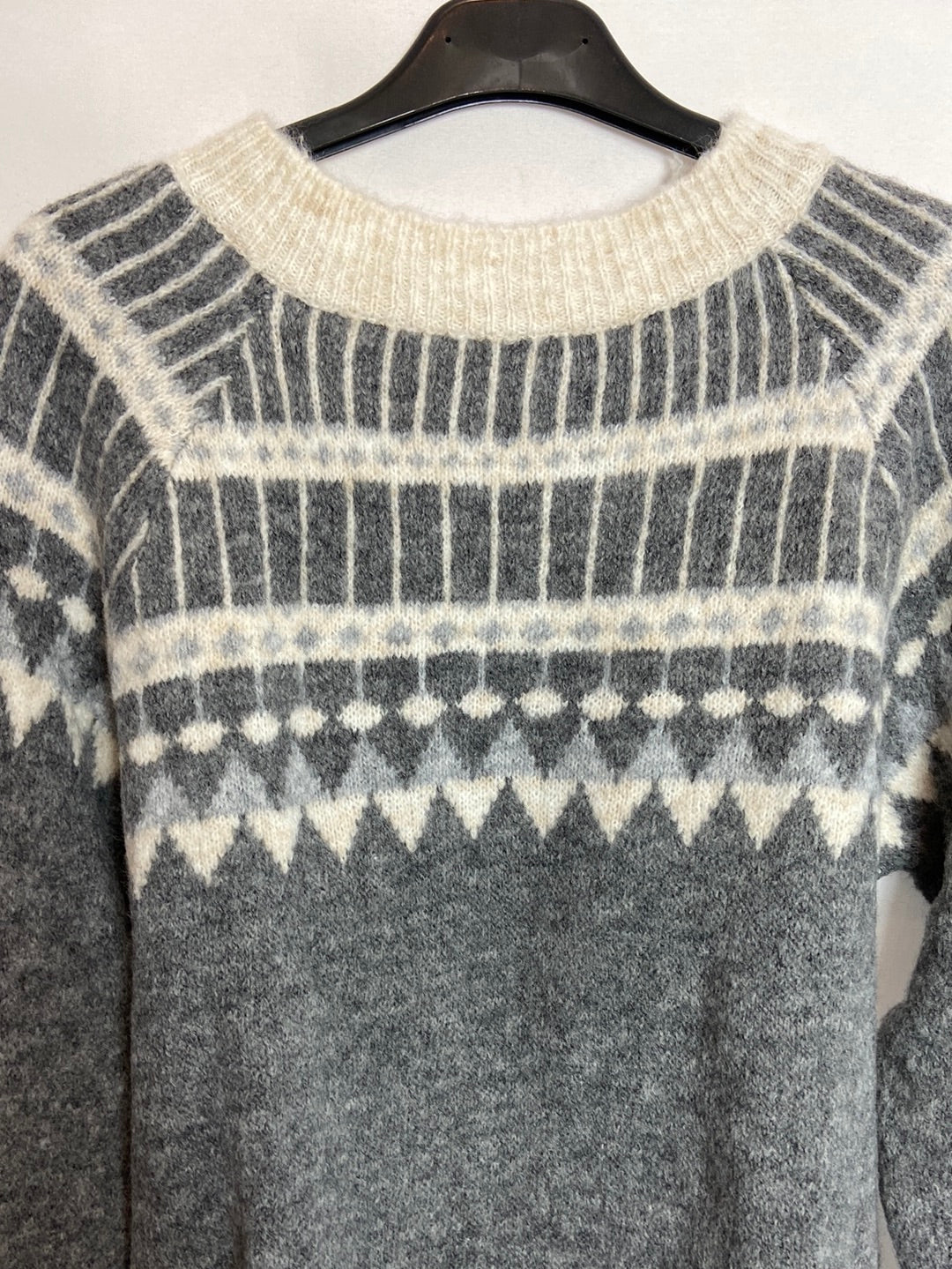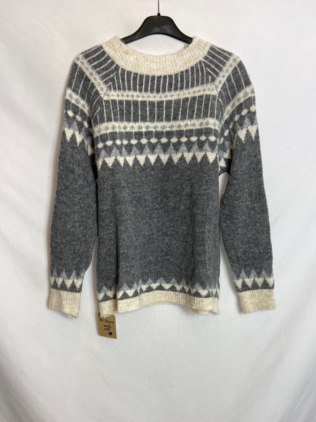 NUEVO CON ETIQUETA. Jersey gris de punto con estampados en blanco
