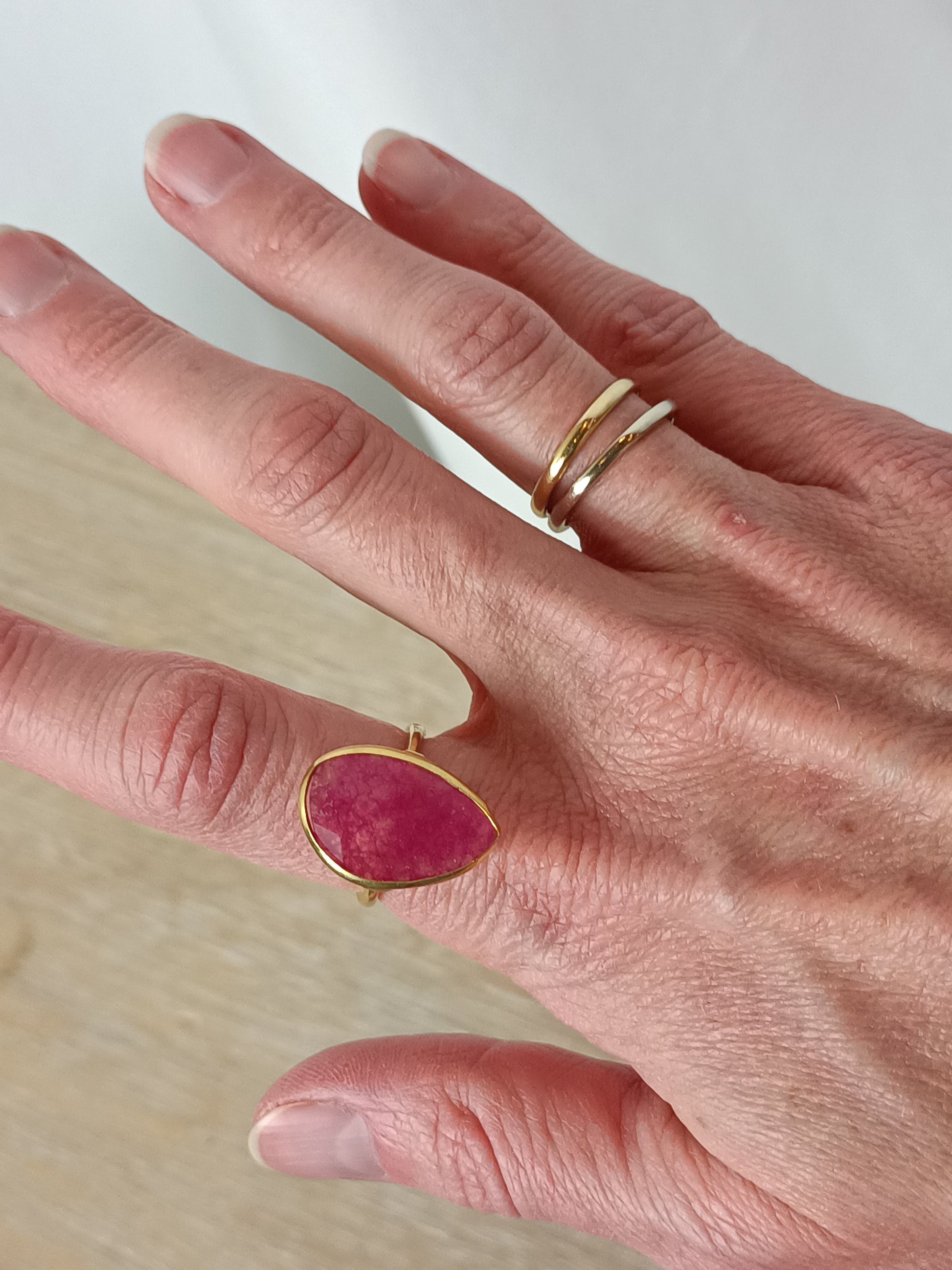 SIN ESTRENAR. anillo estilo gota con piedra rosa