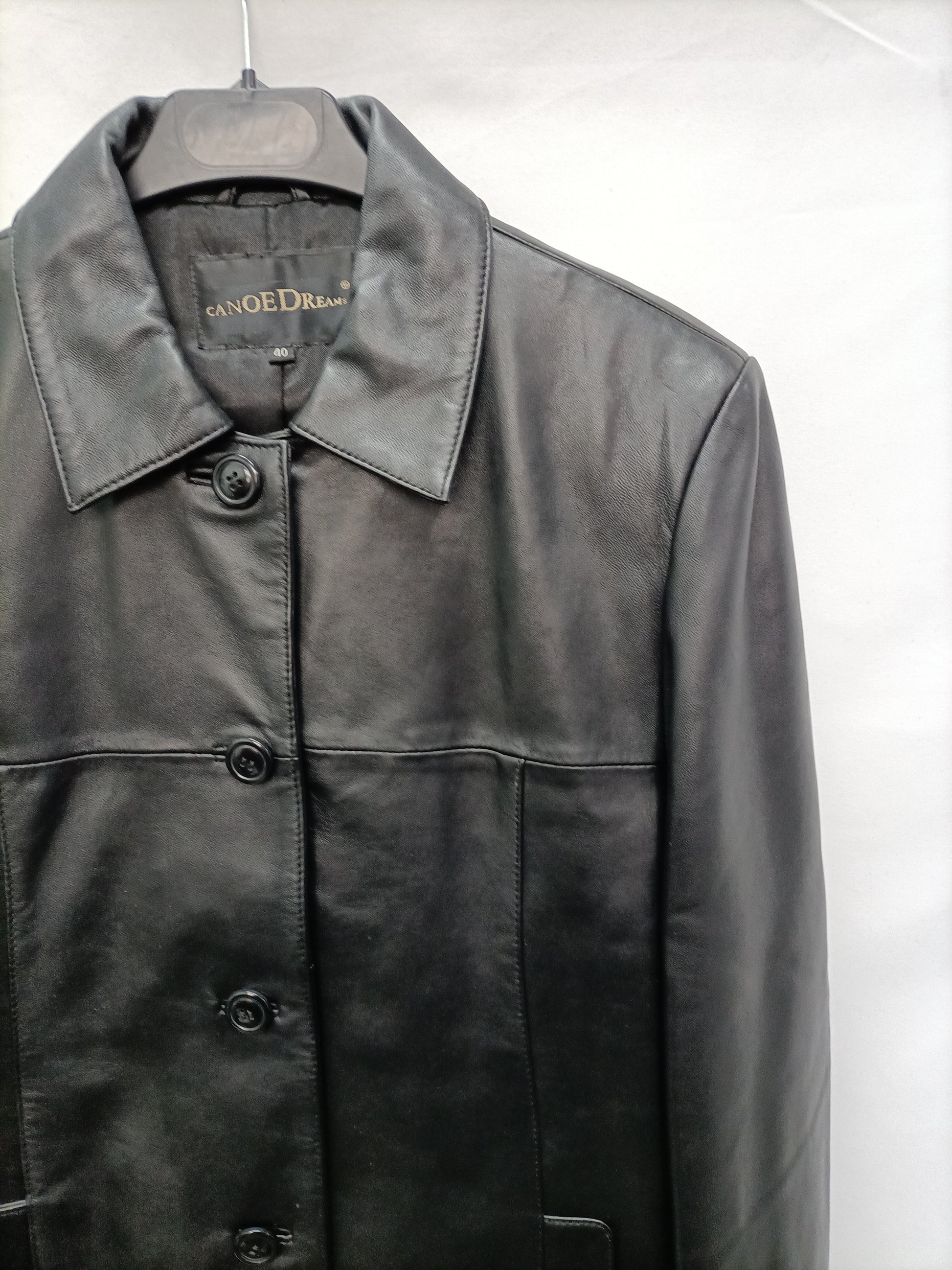 Chaqueta negra de piel estilo vintage Abotonada. No elástica. De sisa a sisa 46 cm largo 70 cm