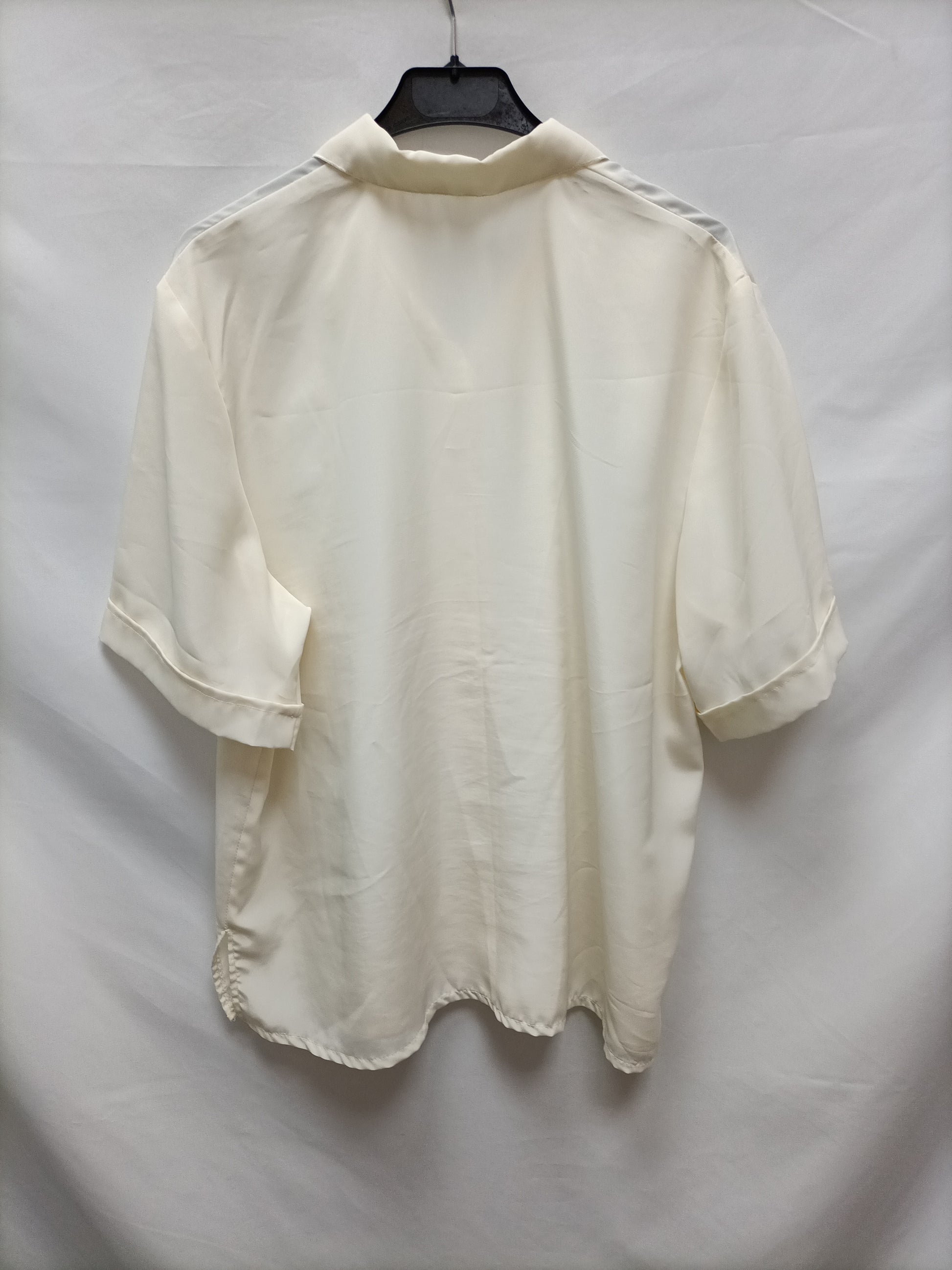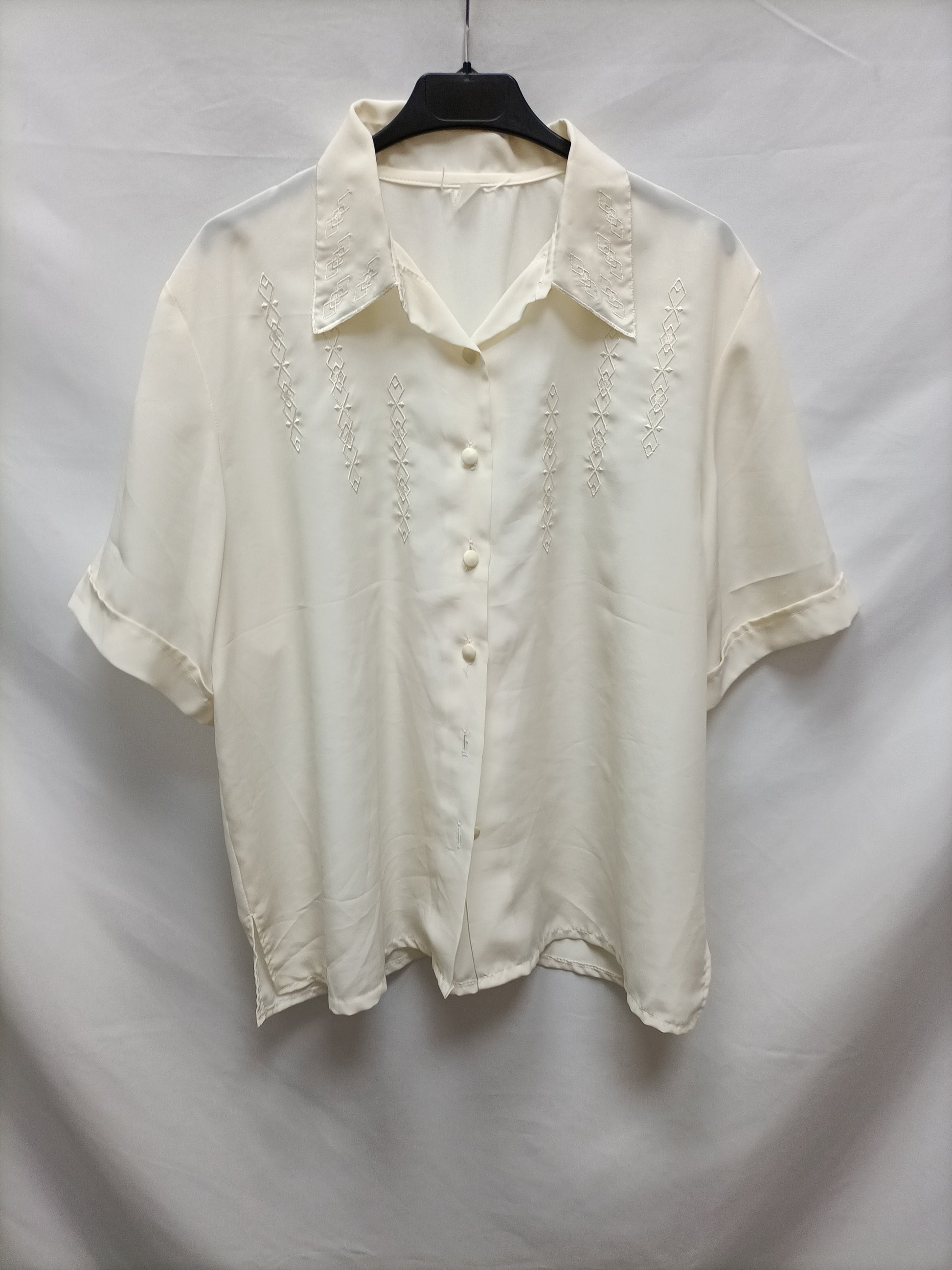 Blusa vintage beige con detalles bordados en pecho y cuello. Fluida y no elástica. De sisa a sisa 57 cm Largo 70 cm