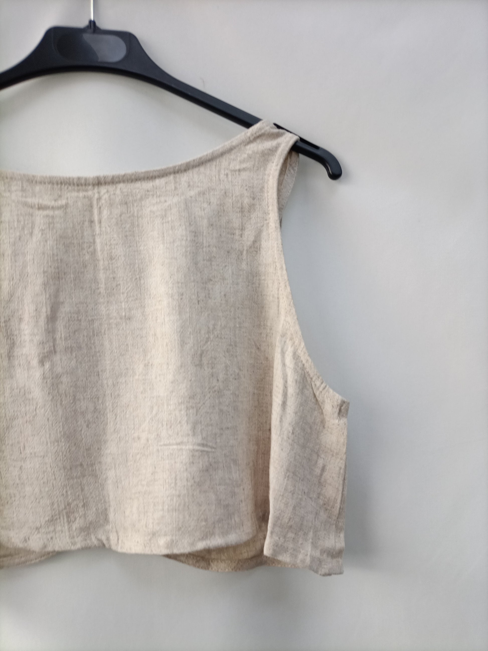 Top de tejido de lino y viscosa con espalda abierta. Total looh. De sisa a sisa 46 cm Largo 36 cm