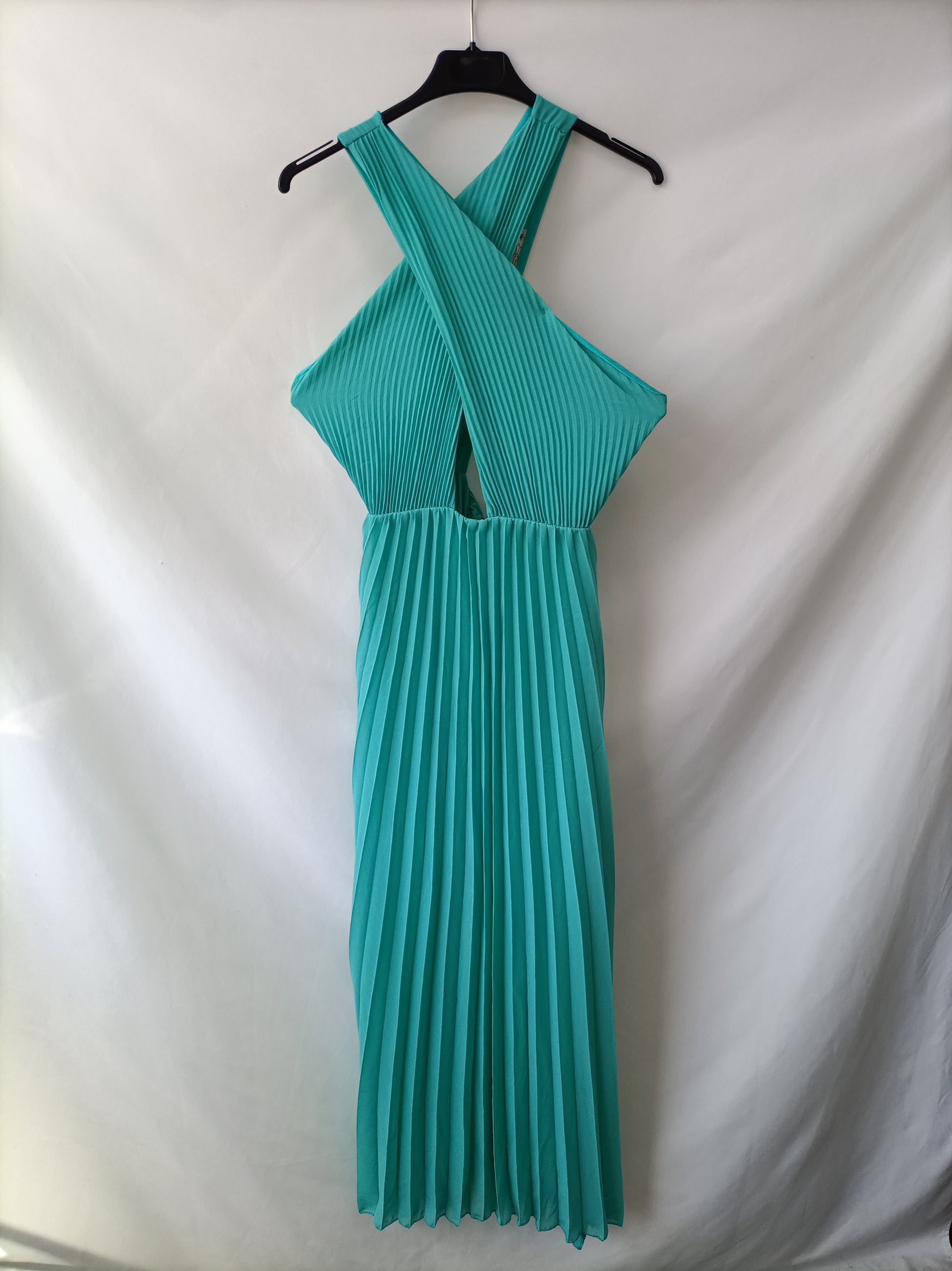 SAZALAXA. Vestido verde Plisado T.u(s)
