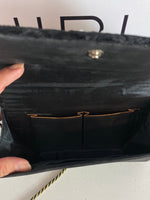 Bolso terciopelo negro decorado con perlas y detalles dorados