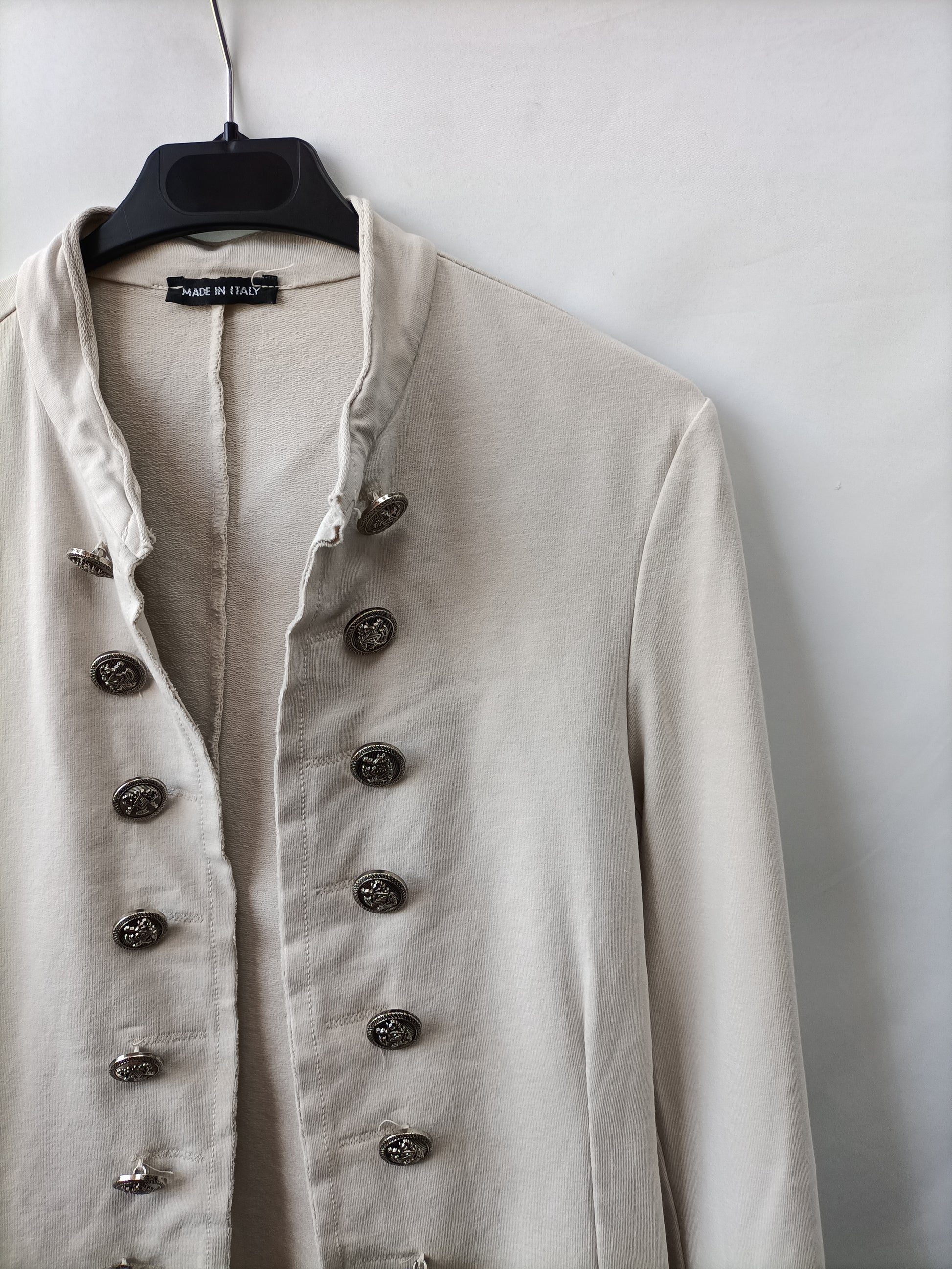 blazer beige de tejido elástico efecto militar con los botones. no se abrocha. Largo 70 cm