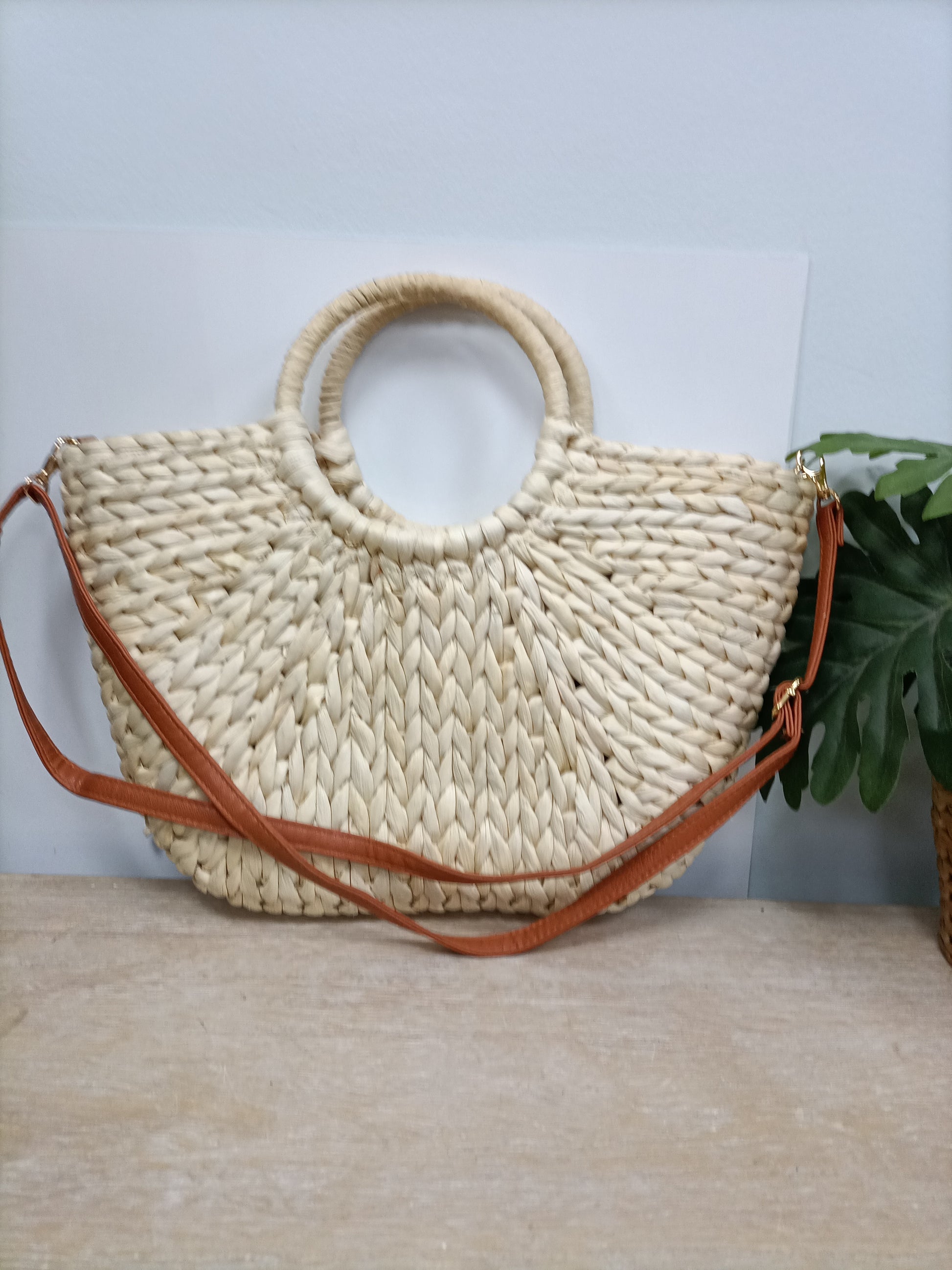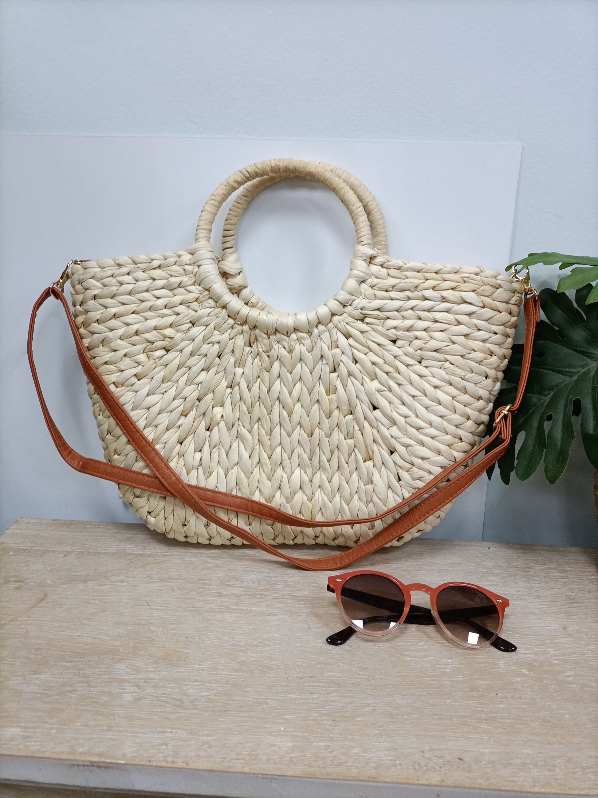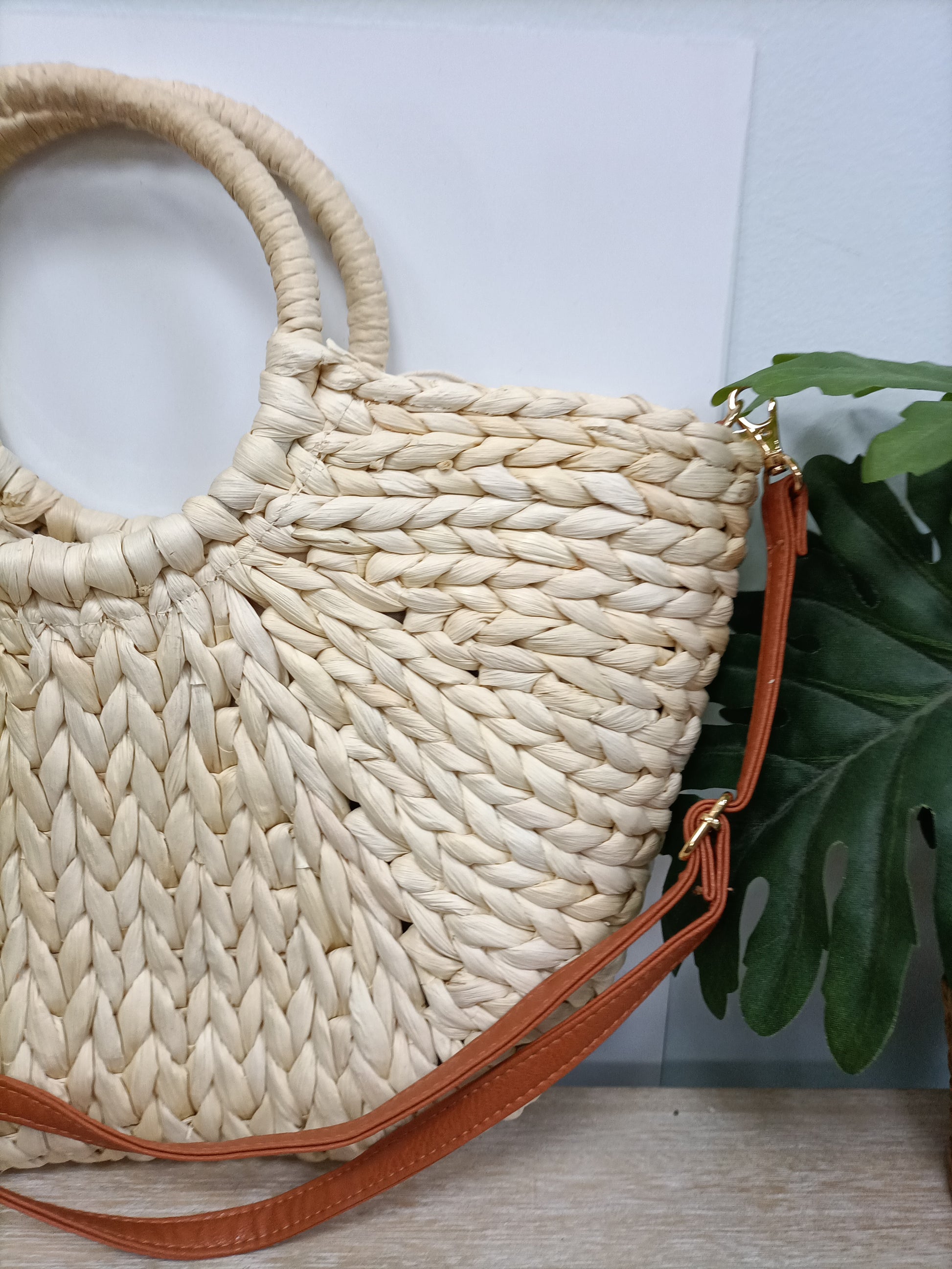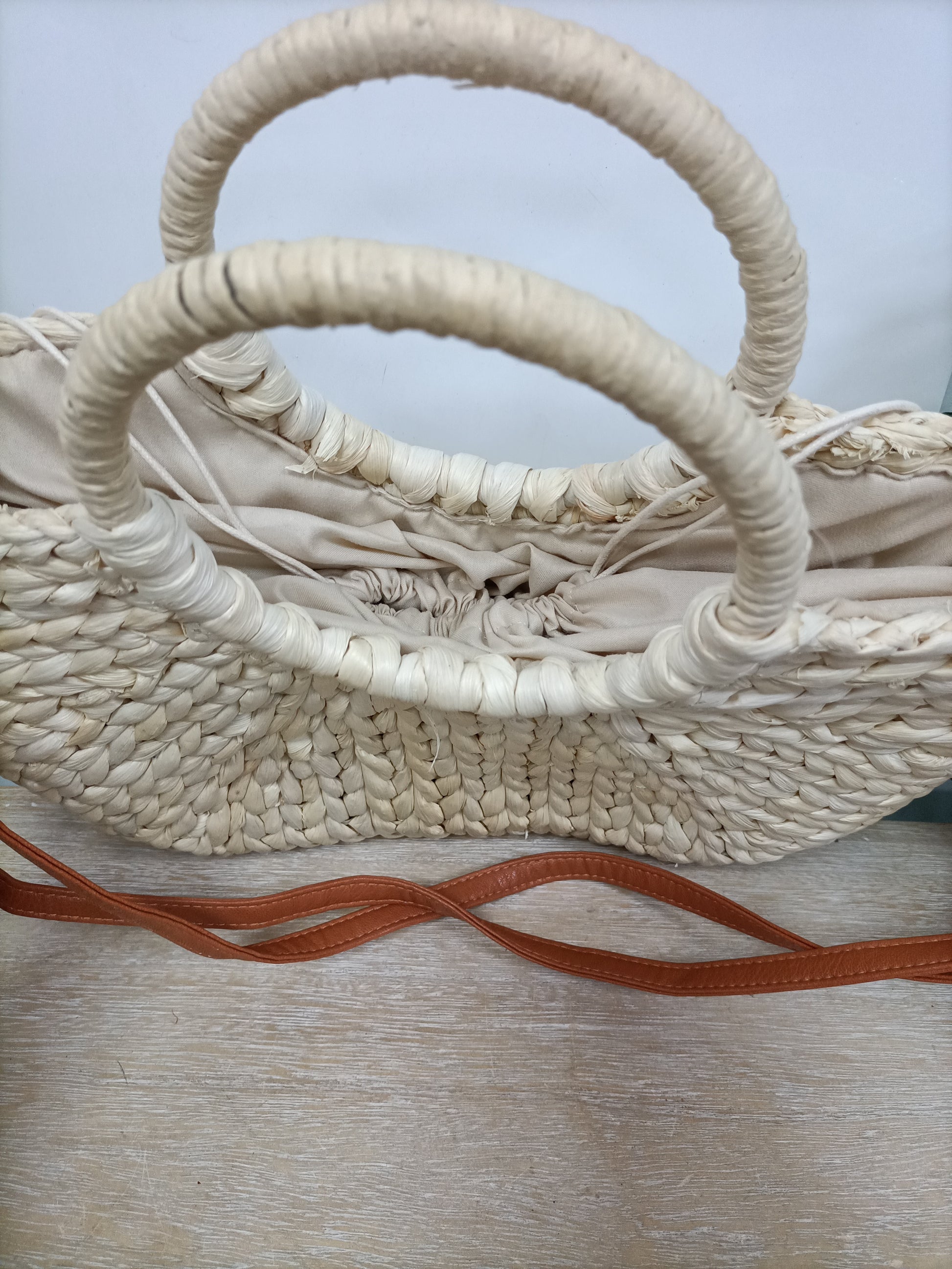Bolso de oaja estilo capazo. El interior se cierra tipo saco. Tiene asa en polípiel extraíble