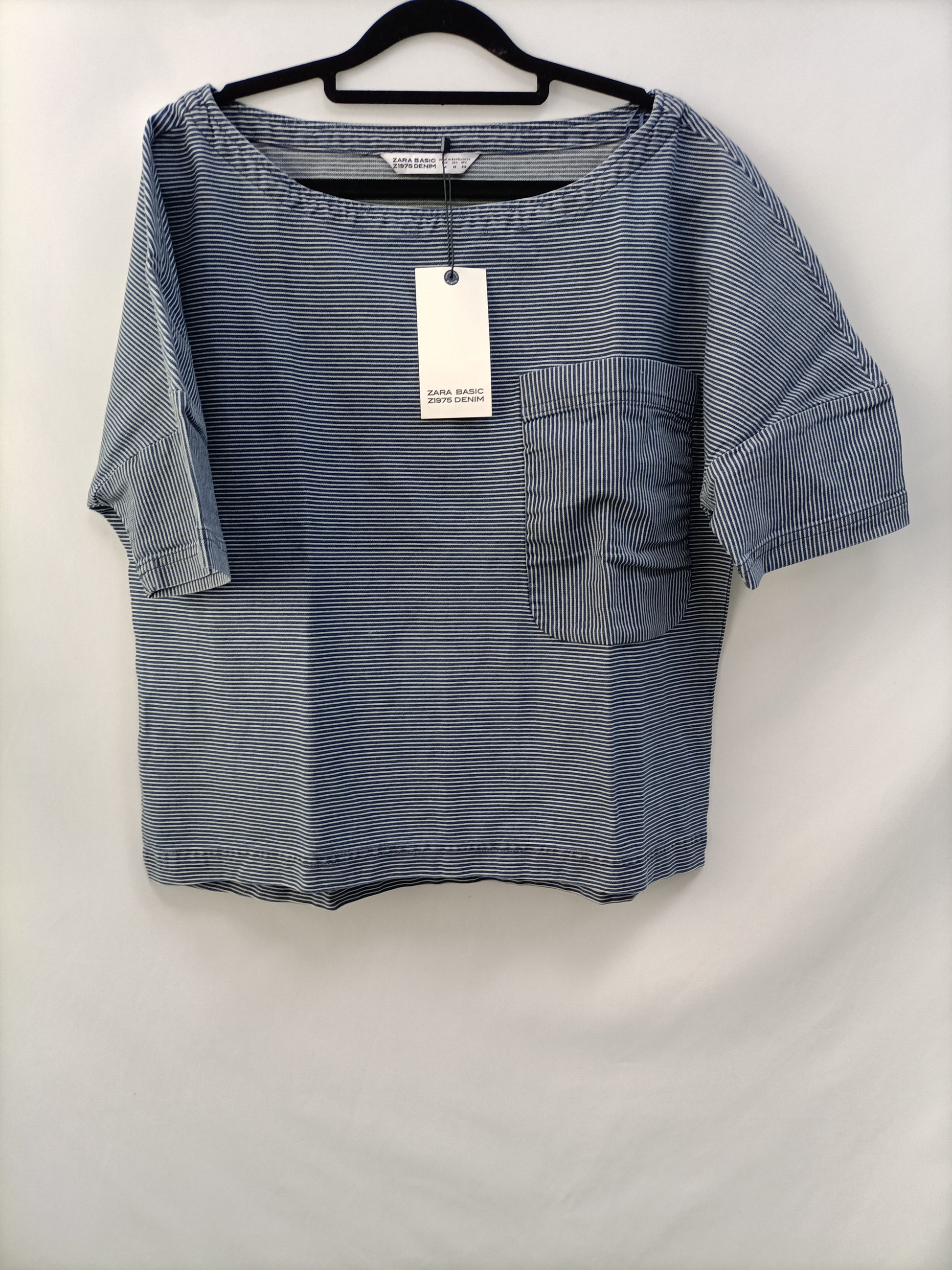 NUEVO CON ETIQUETA. Top denim rayas estilo oversized. Largo 58 cm