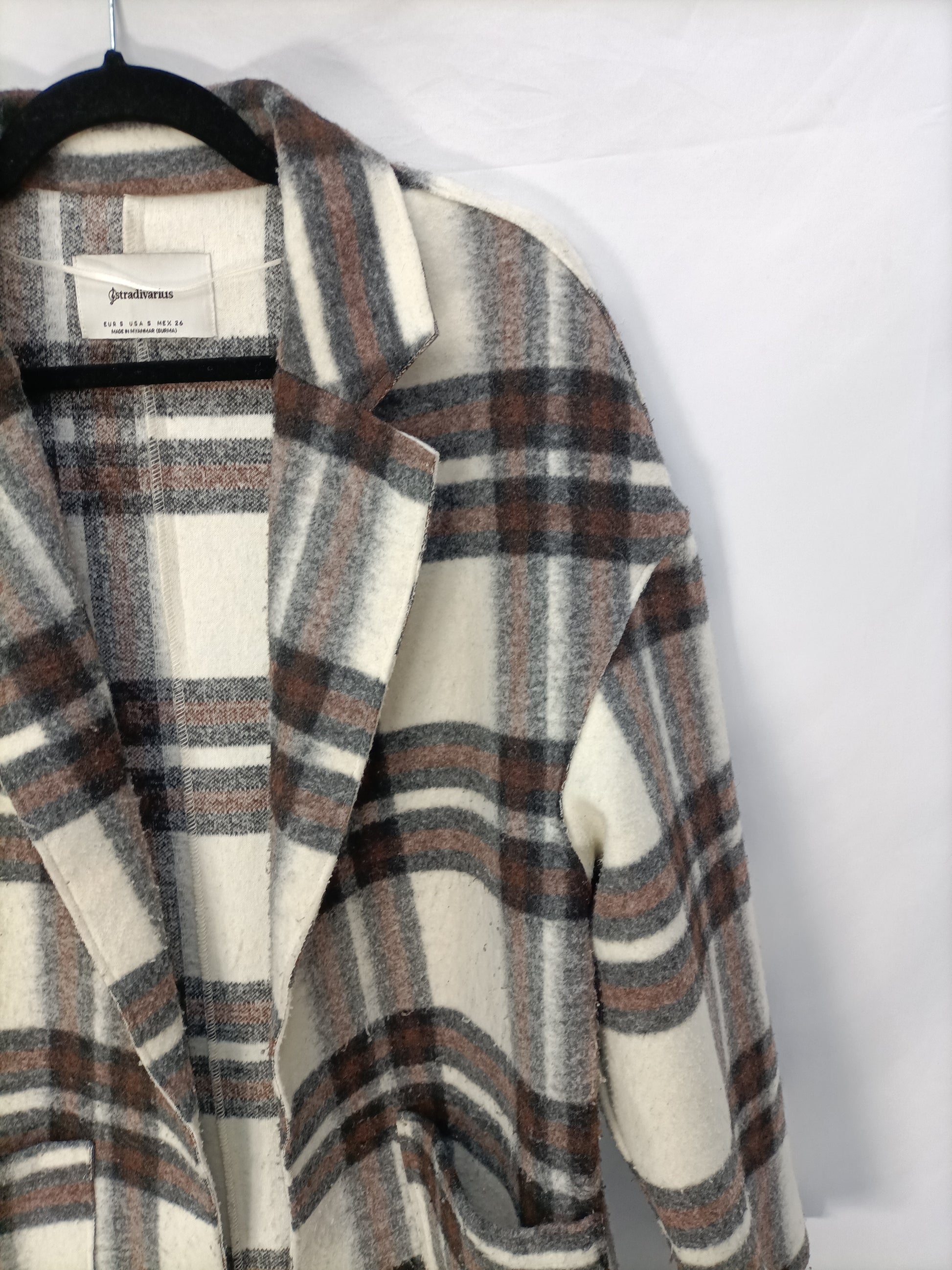 STRADIVARIUS. Abrigo largo cuadros T.s