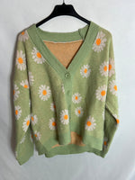 OTRAS. Cárdigan verde estampado. T.u(s/m)