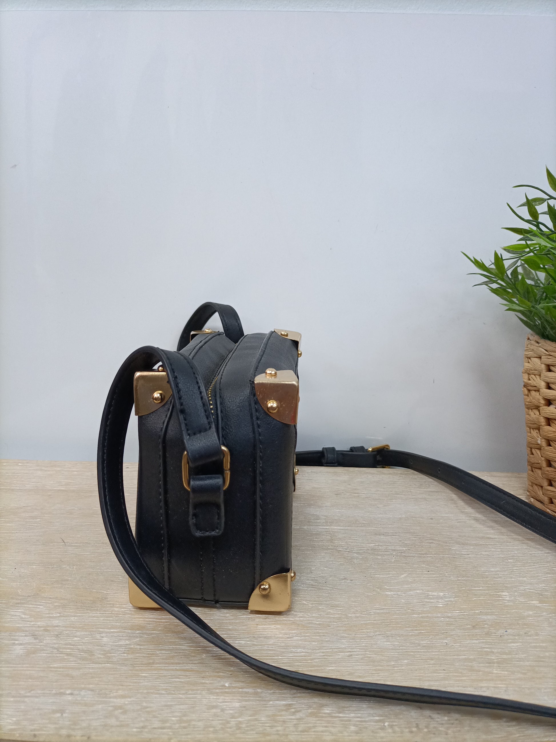 NUEVO CON ETIQUETA. Bolso negro estilo caja rijido. Efecto piel.