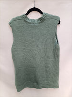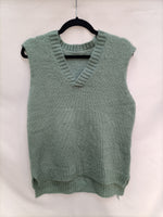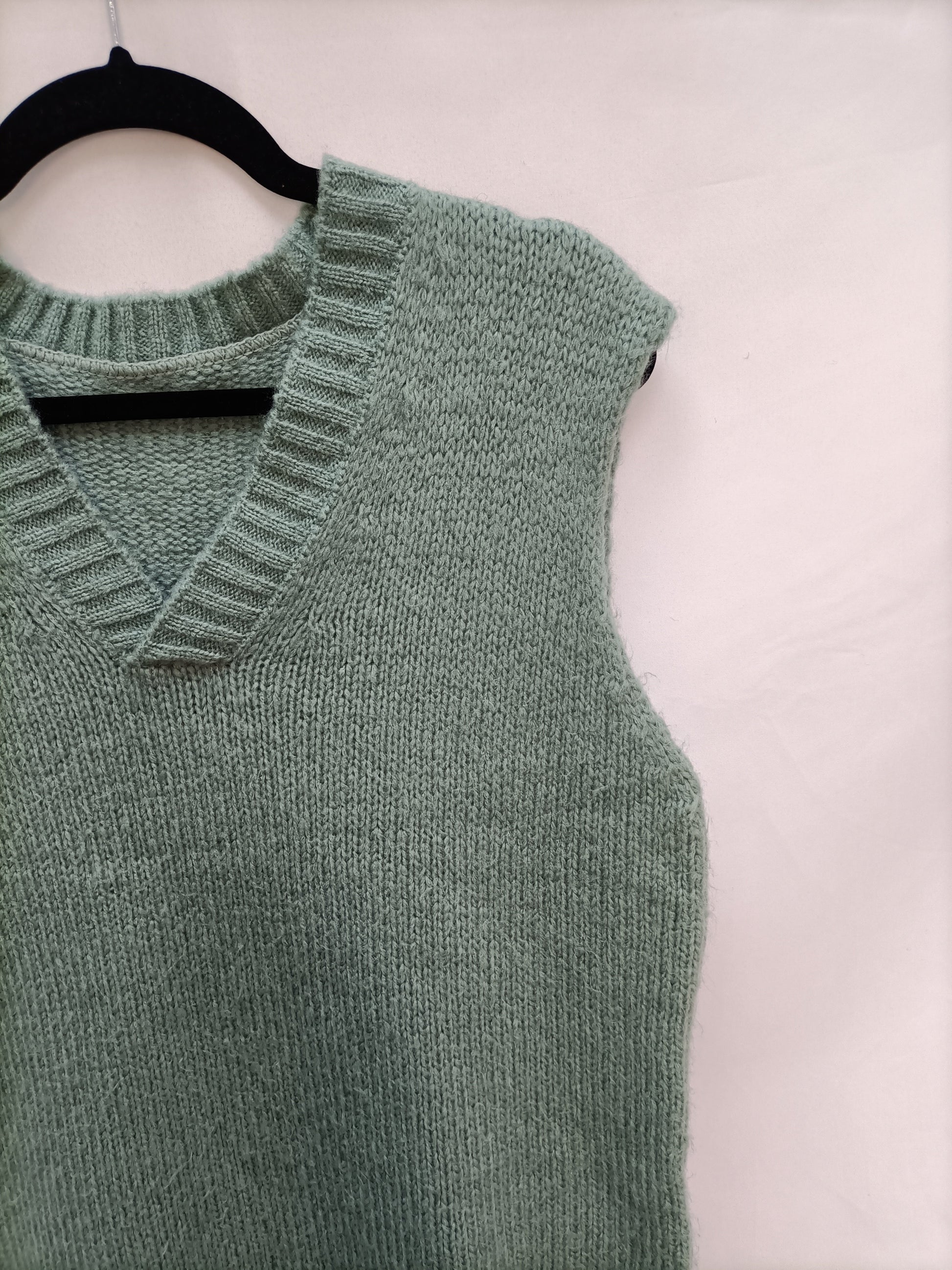 Chaleco de punto oversized verde agua. Largo 69 cm