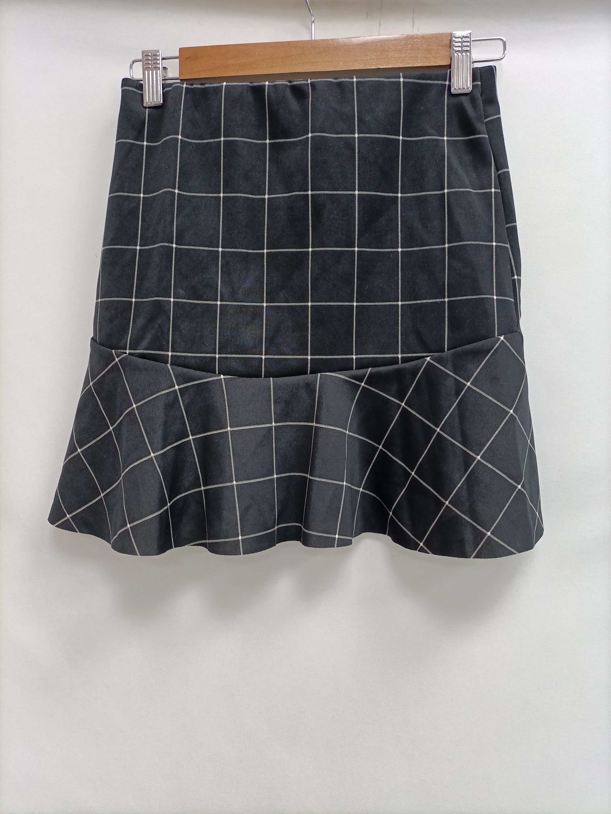 Falda negra con cuadros blancos de tejido estilo neopreno. Elastico. Largo 39 cm