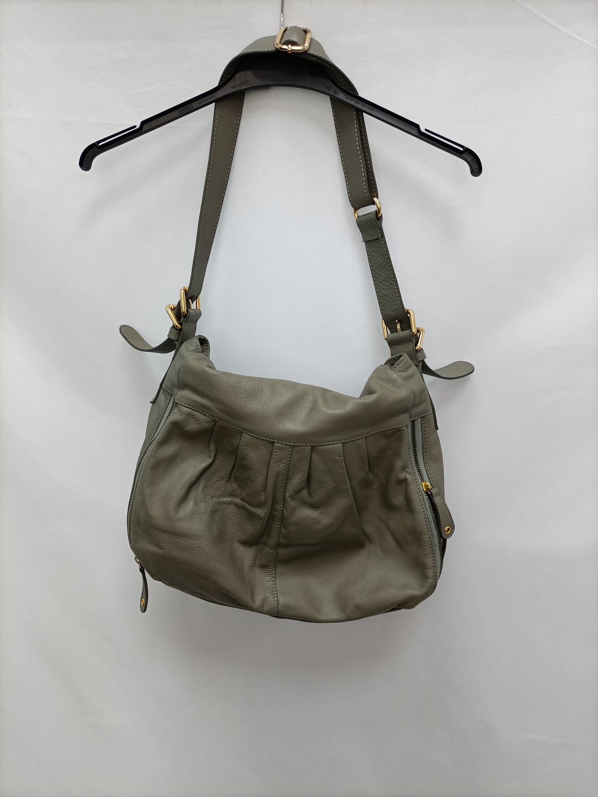 Bolso de polipiel verde grisáceo con el asa extensible. Amplio con detalle de cremalleras. 37x27x15 cm