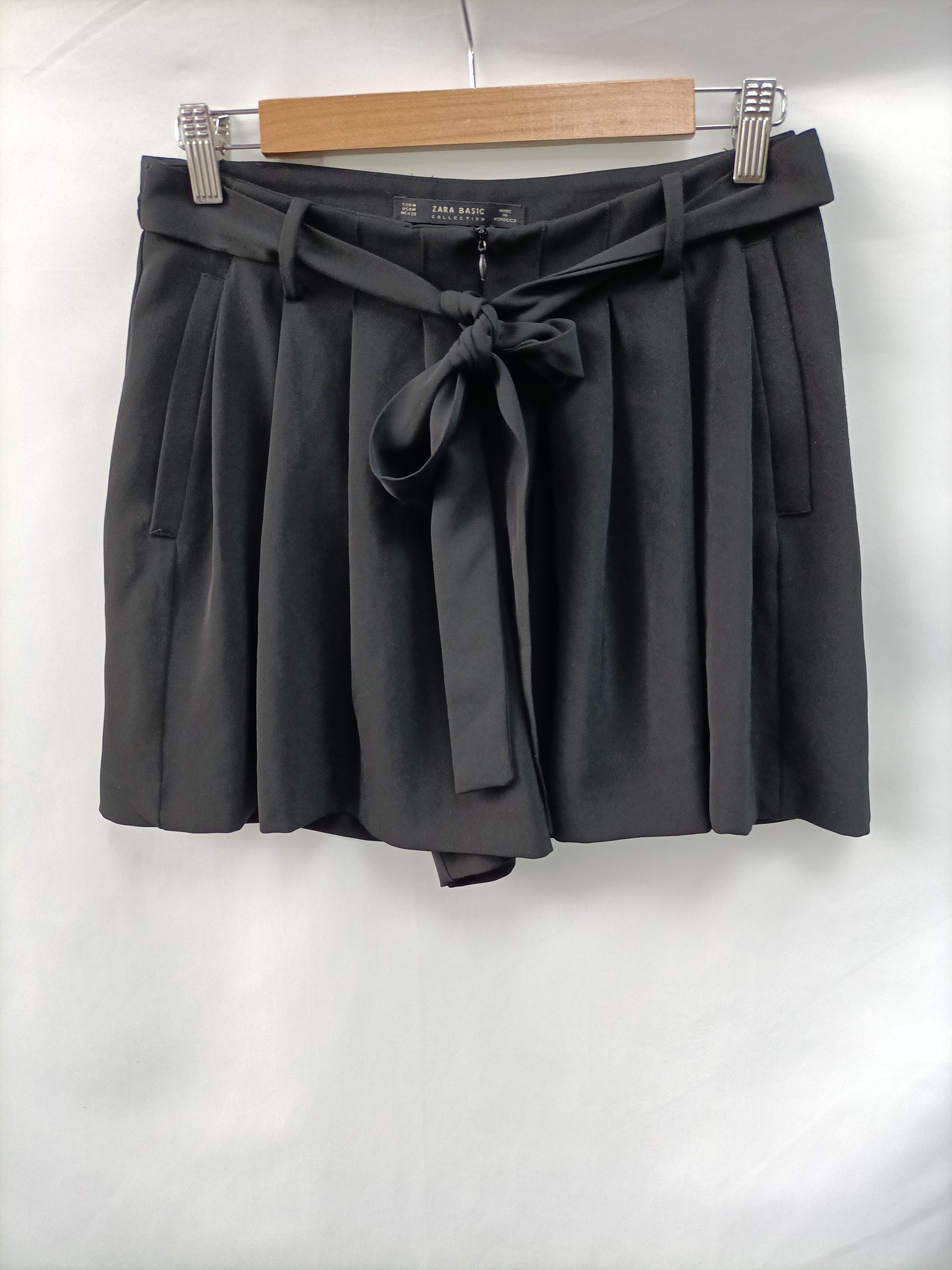 Pantalón corto negro fluido con la parte delantera de tablas. No elastico. Cintura 36 cm largo 36 cm