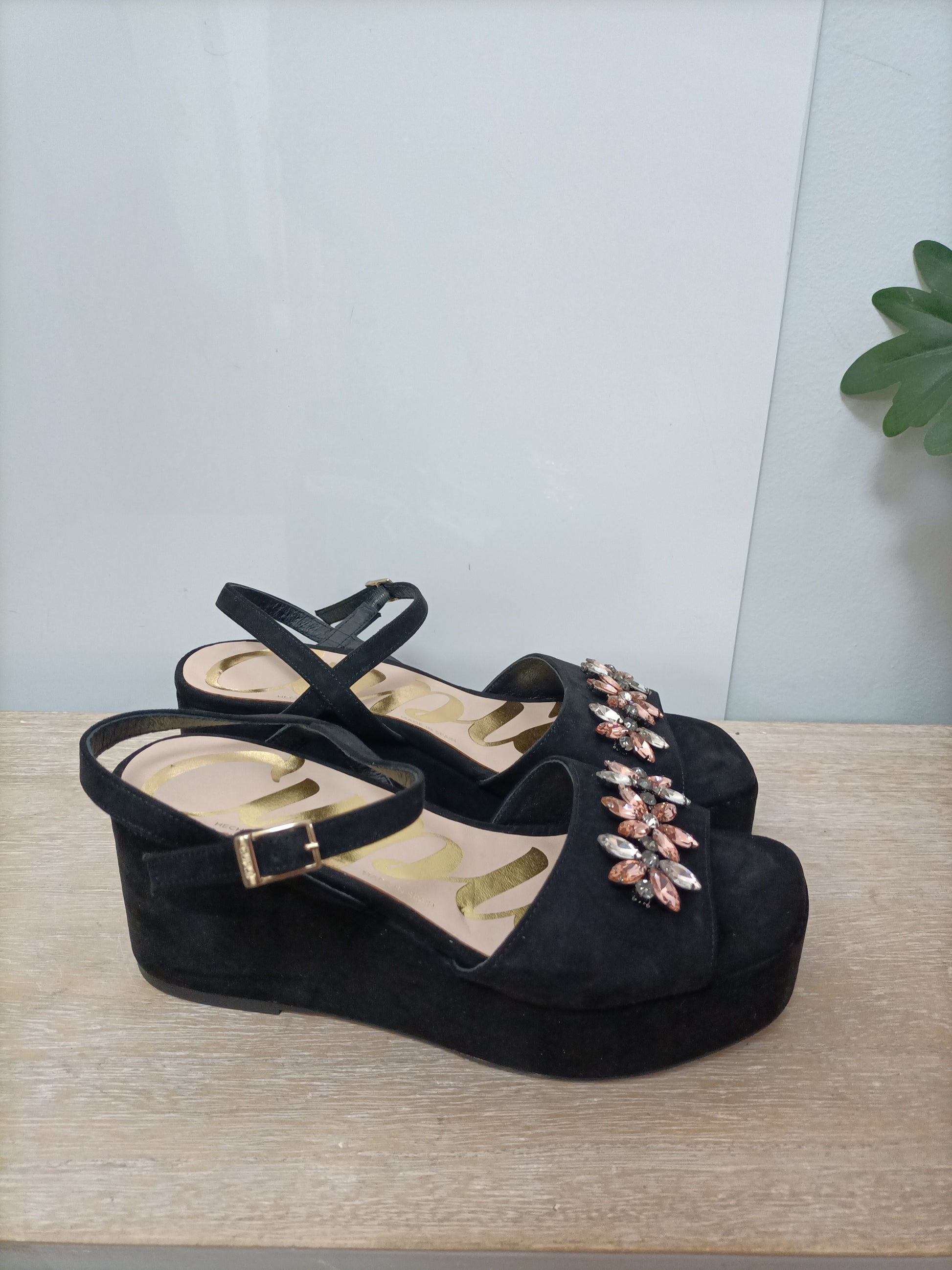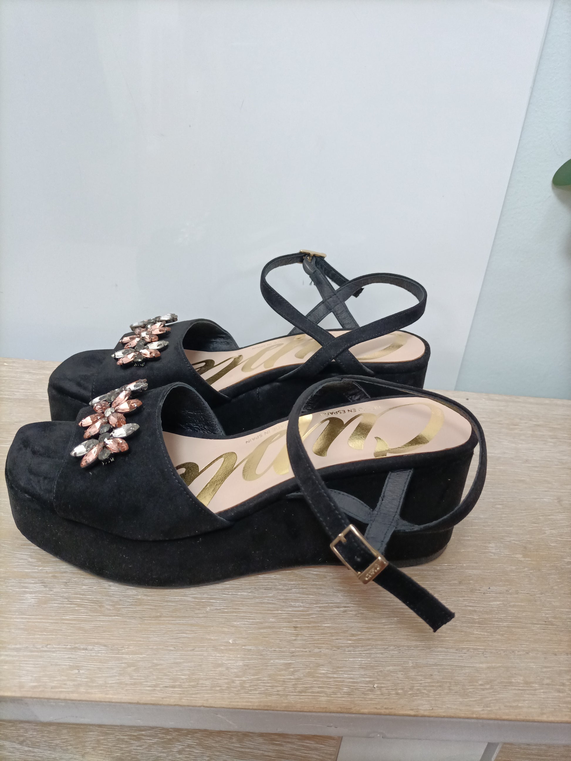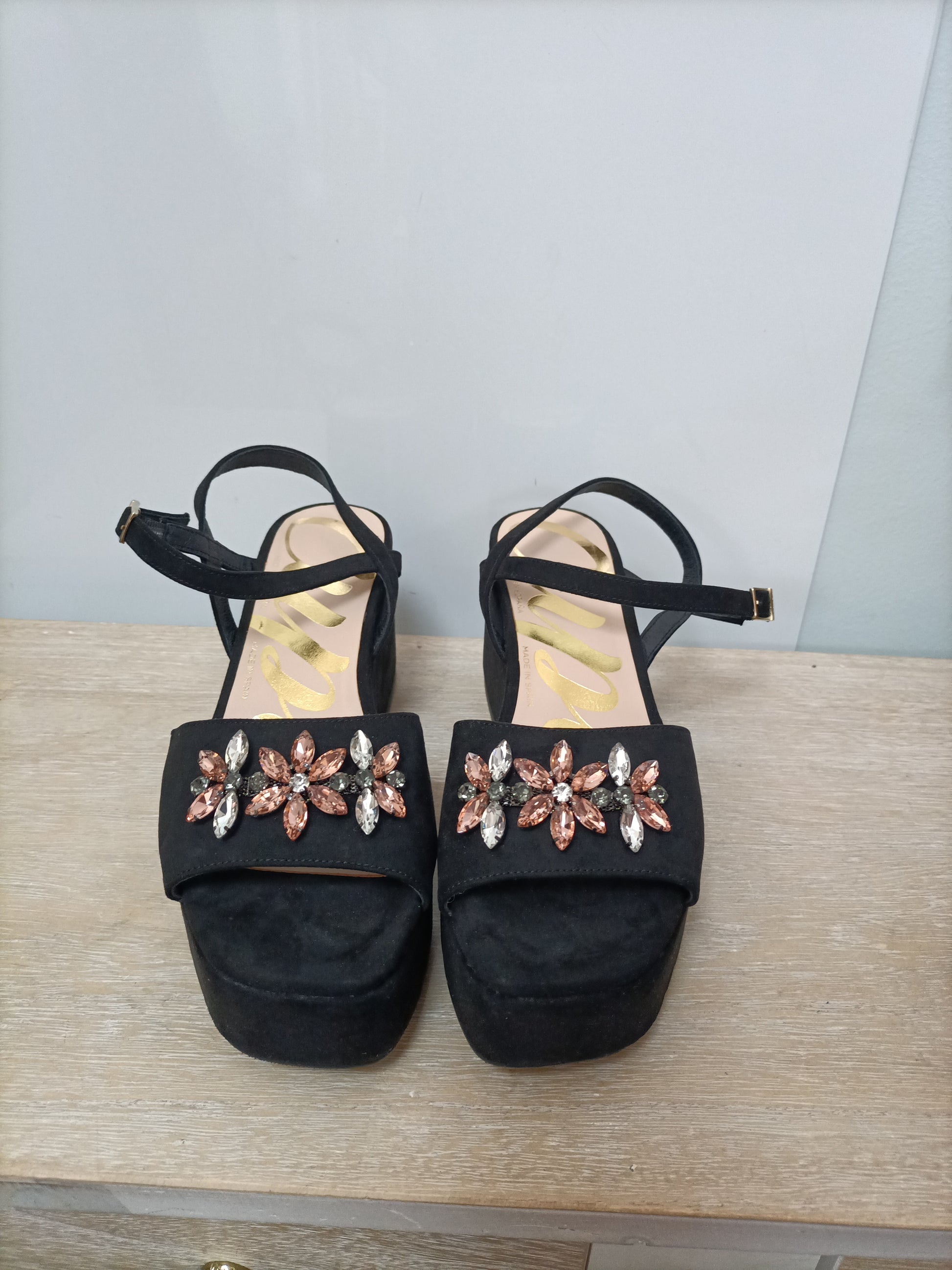 Plataformas negras de antelina con pedrería. Tacón 8 cm plataforma 4 cm
