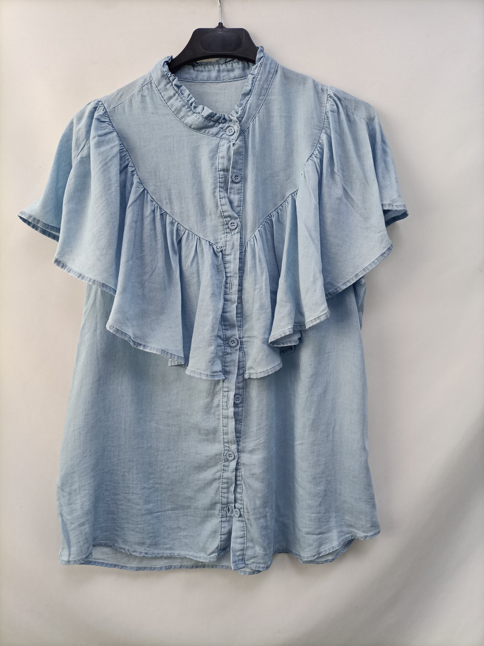 Camisa vaquera volante. De sisa a sisa 52 cm Largo 70 cm