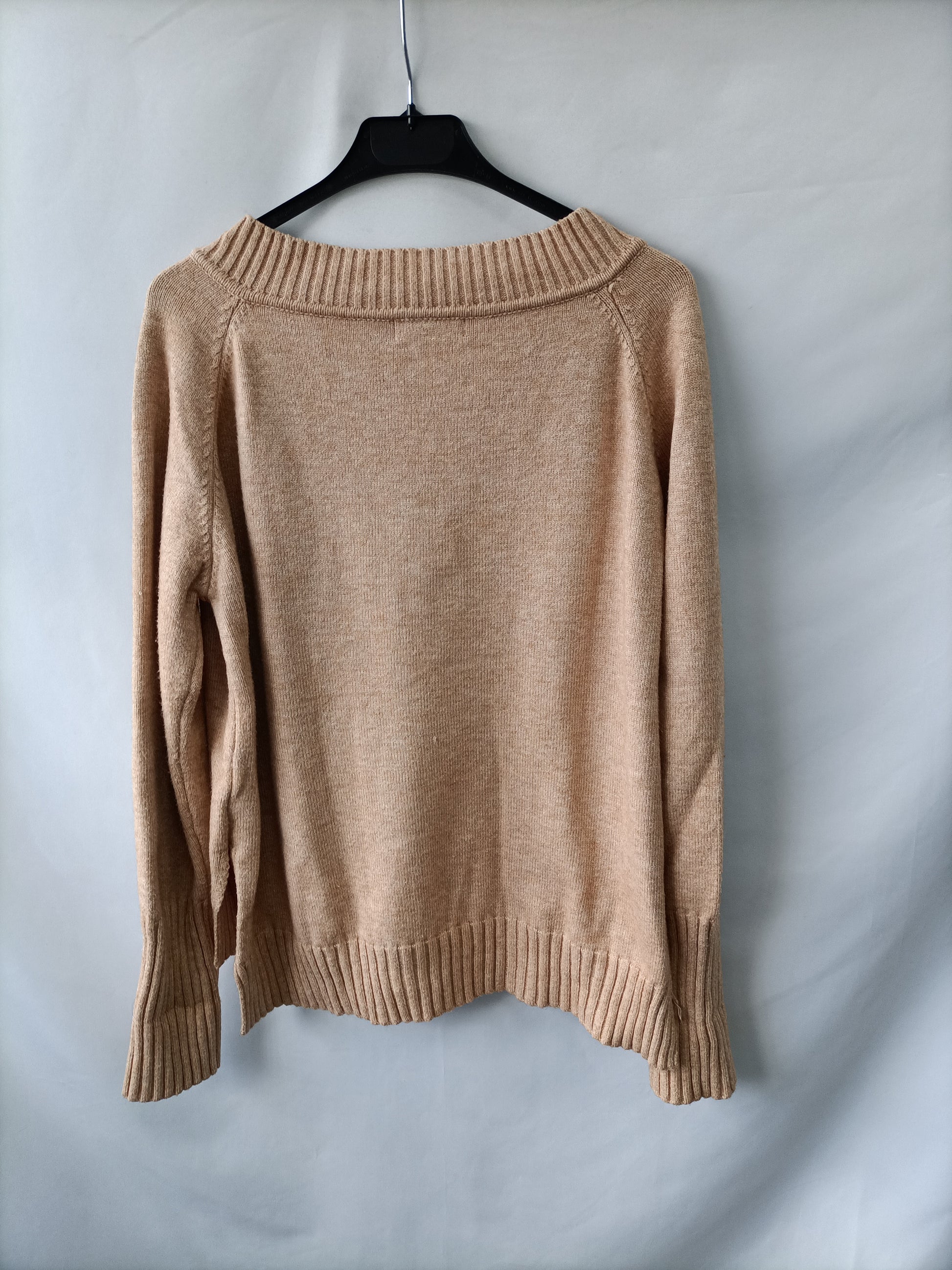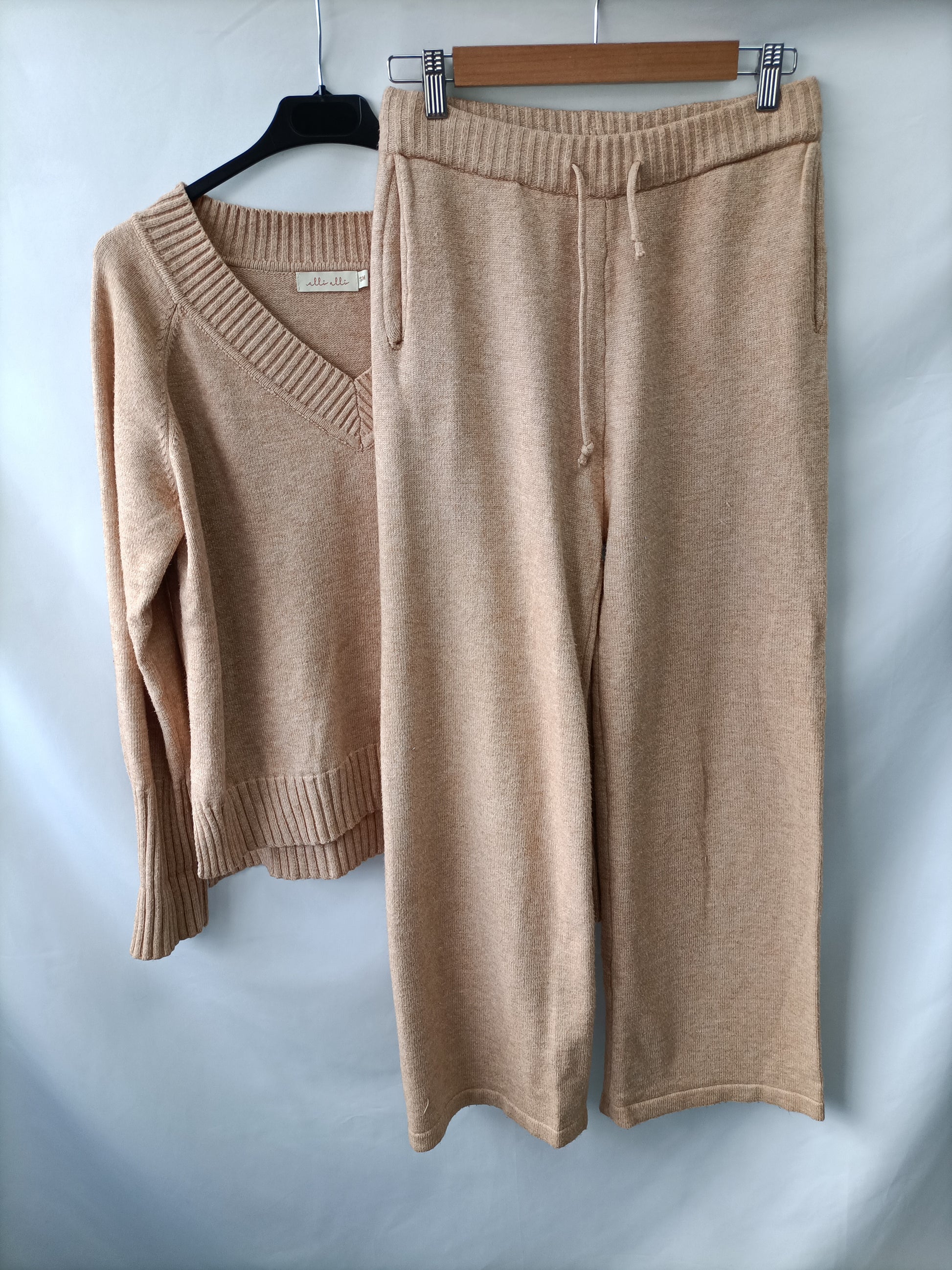 Jersey beige jaspeado con apertura en los laterales. elástico. Largo 80 cm. Total look con pantalones.