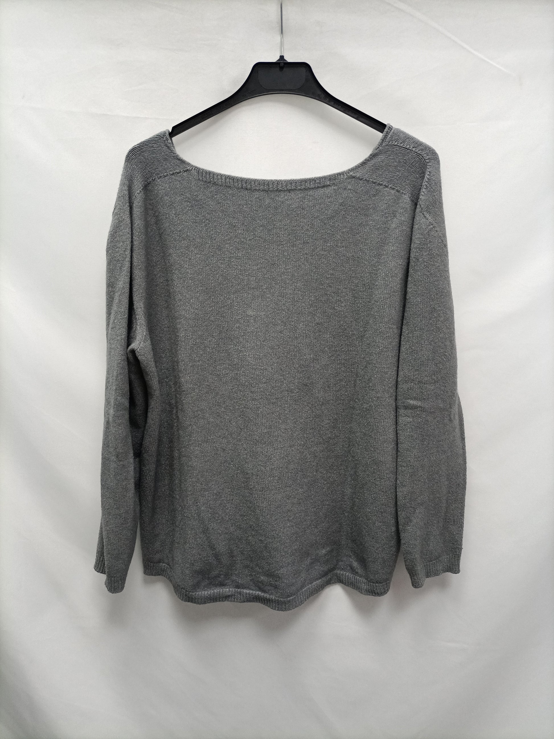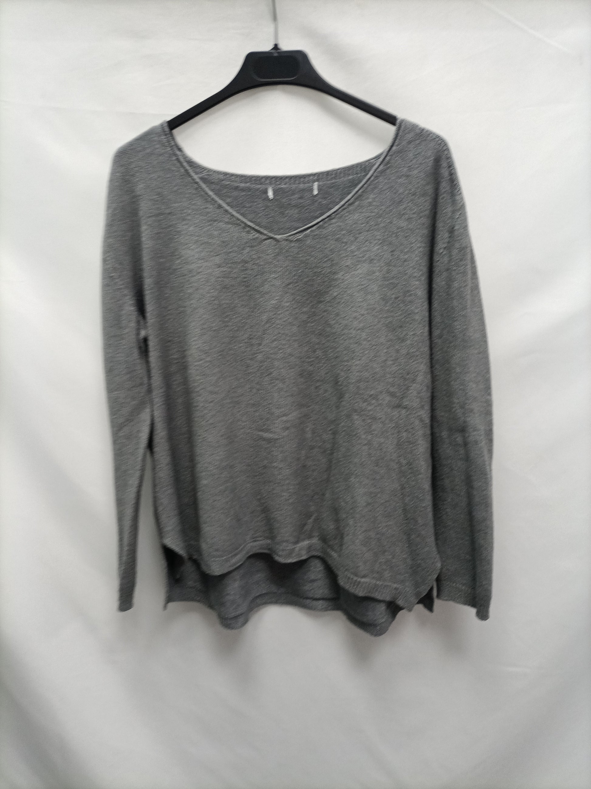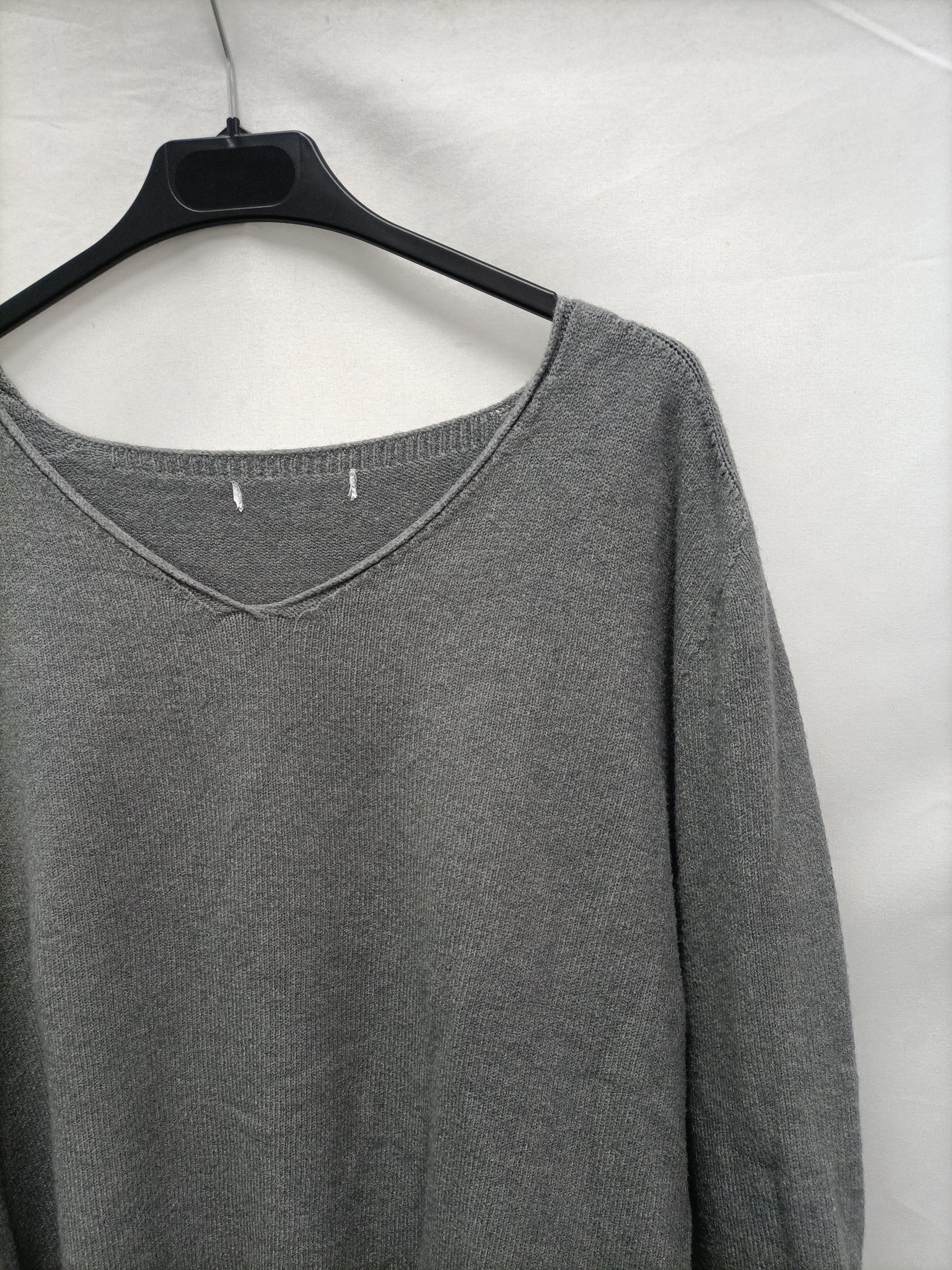 Jersey gris fluido de punto con escote pico. Básico. largo 61 cm