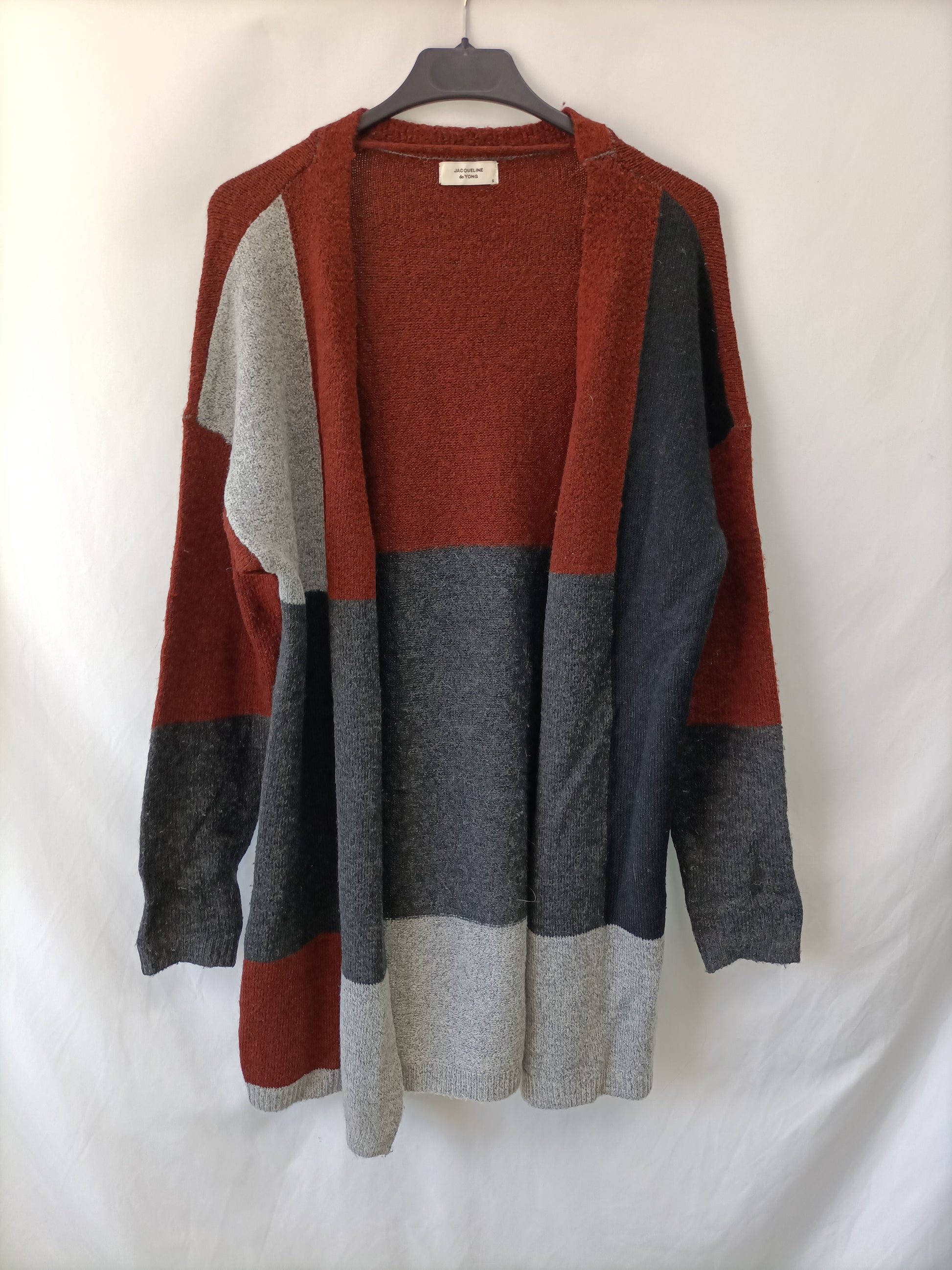 Cárdigan abierto de rayas. Elastico . Largo 82 cm